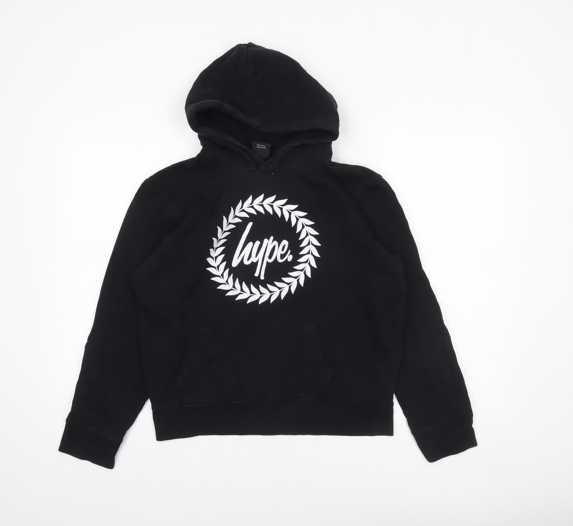 Upgrade his casual wardrobe with this stylish Hype boys’ pullover hoodie, designed in a sleek black colourway with an iconic white Hype logo print framed by a laurel wreath on the chest. Made from soft 100% cotton, this hoodie provides unbeatable comfort and breathability for everyday wear. The premium cotton fabric feels gentle on the skin, making it perfect for layering during cooler days or wearing on its own as a statement piece. Designed with ribbed cuffs and hem for a snug fit, a classic kangaroo pocket, and a cosy hood, it’s an easy go-to choice for school, weekends, or casual outings. The regular fit allows for a relaxed yet flattering silhouette that keeps him comfortable from morning to night. This hoodie embodies the effortlessly cool streetwear aesthetic that Hype is known for, giving your young trendsetter a touch of urban edge while remaining practical. Ideal for autumn, winter, and early spring seasons, this hoodie looks great paired with jeans, joggers, or shorts. Whether for lounging or hitting the high street, it delivers both comfort and contemporary style. The piece is in excellent pre-owned condition, showing minimal signs of wear and no visible defects. It’s a must-have for any young fashion enthusiast's collection—combining quality, durability, and iconic design. Get this Hype hoodie now for an affordable price that reflects great value for such a sought-after brand.