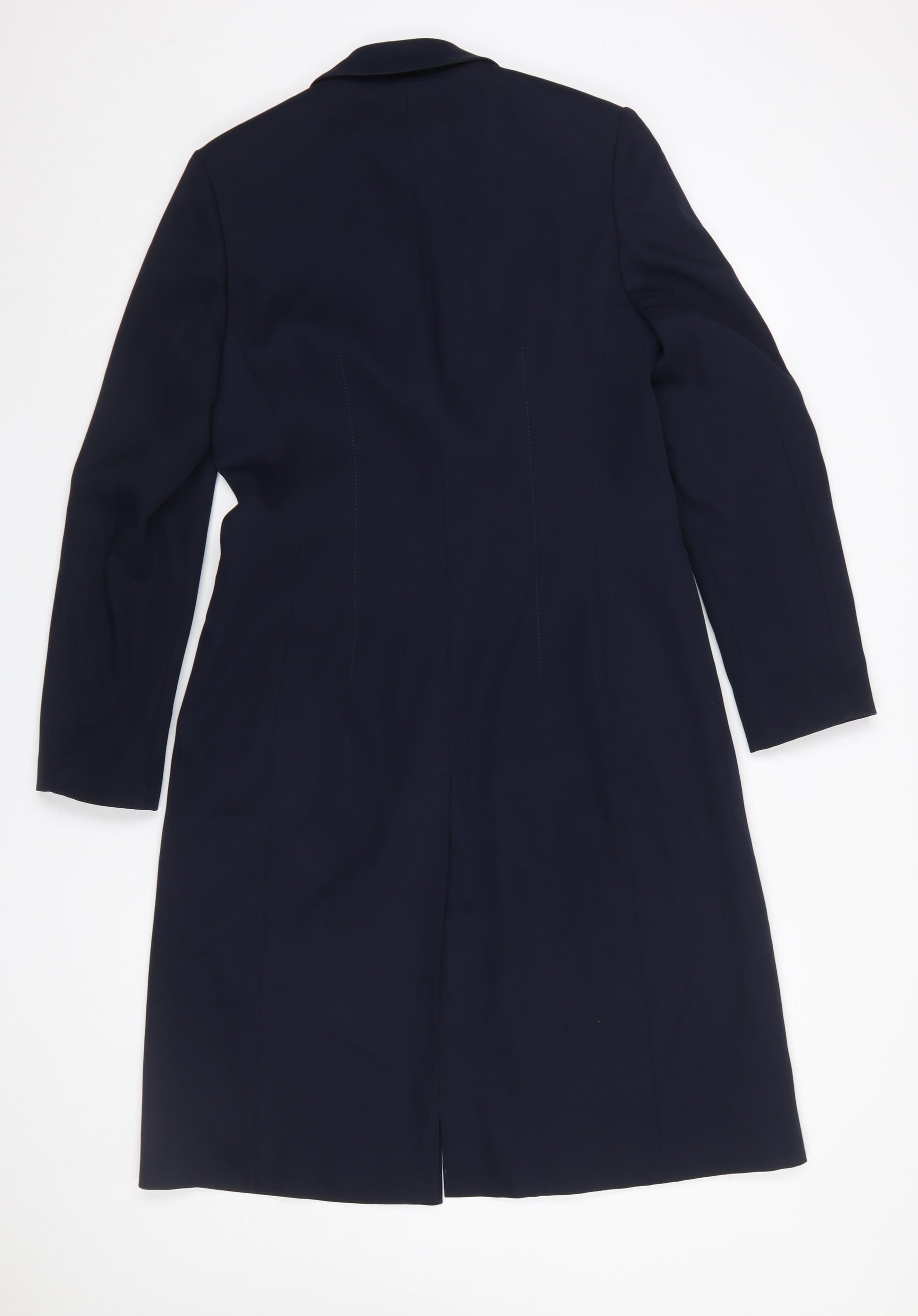 Women's Navy Blue Long Overcoat Size 10 Lined Single-Breasted