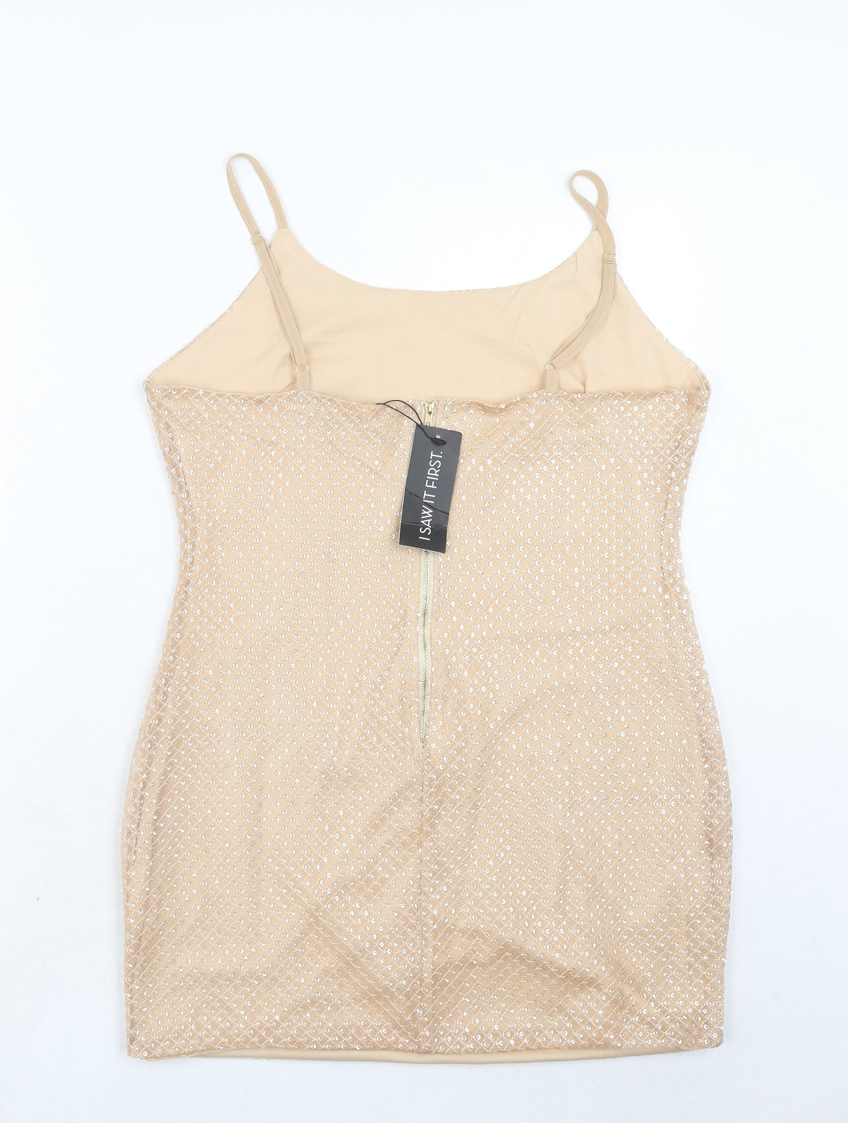 Womens Beige Geometric Polyester Bodycon Size 14 Round Neck Zip