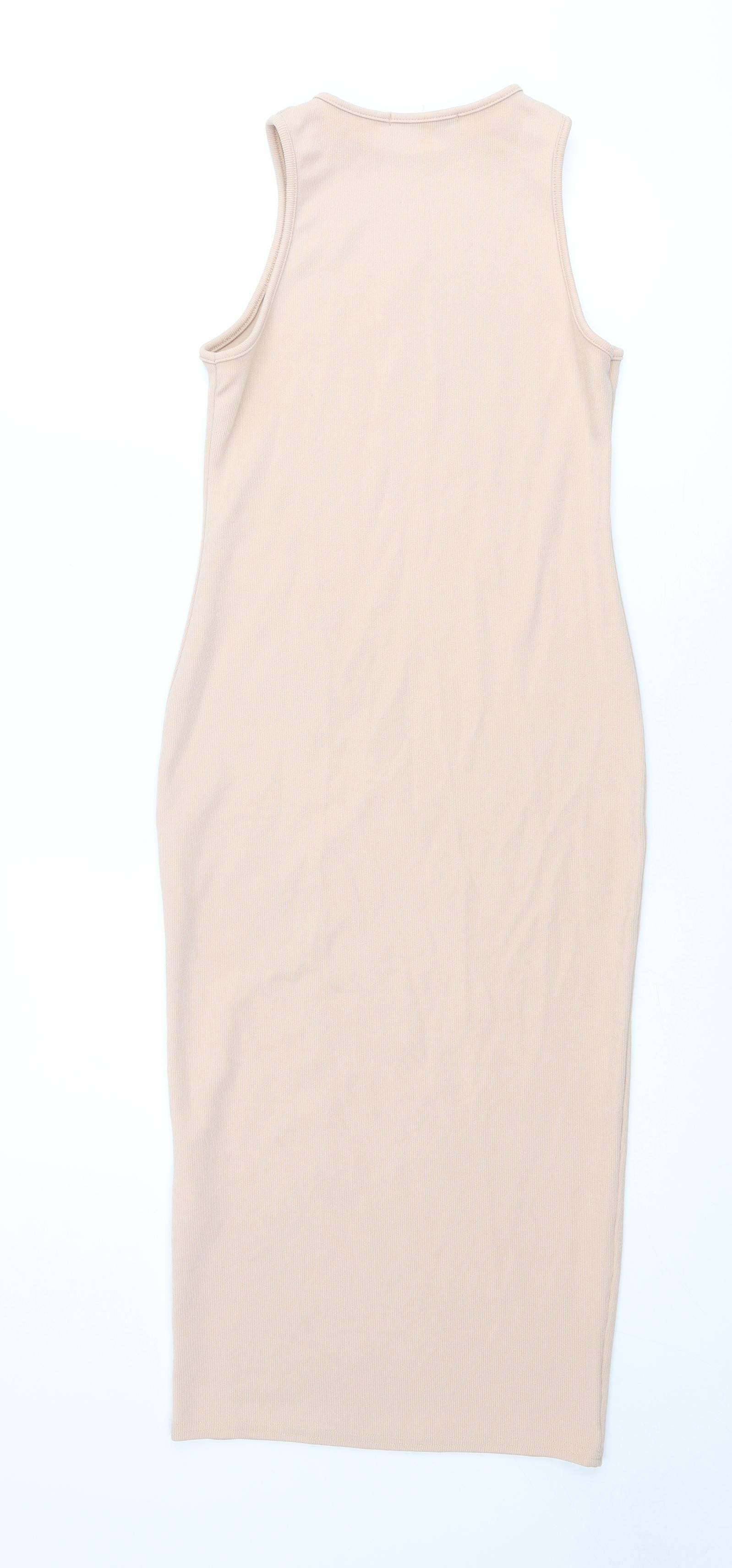 PRETTYLITTLETHING Womens Beige Polyester Bodycon Size 10 Sweetheart Zip