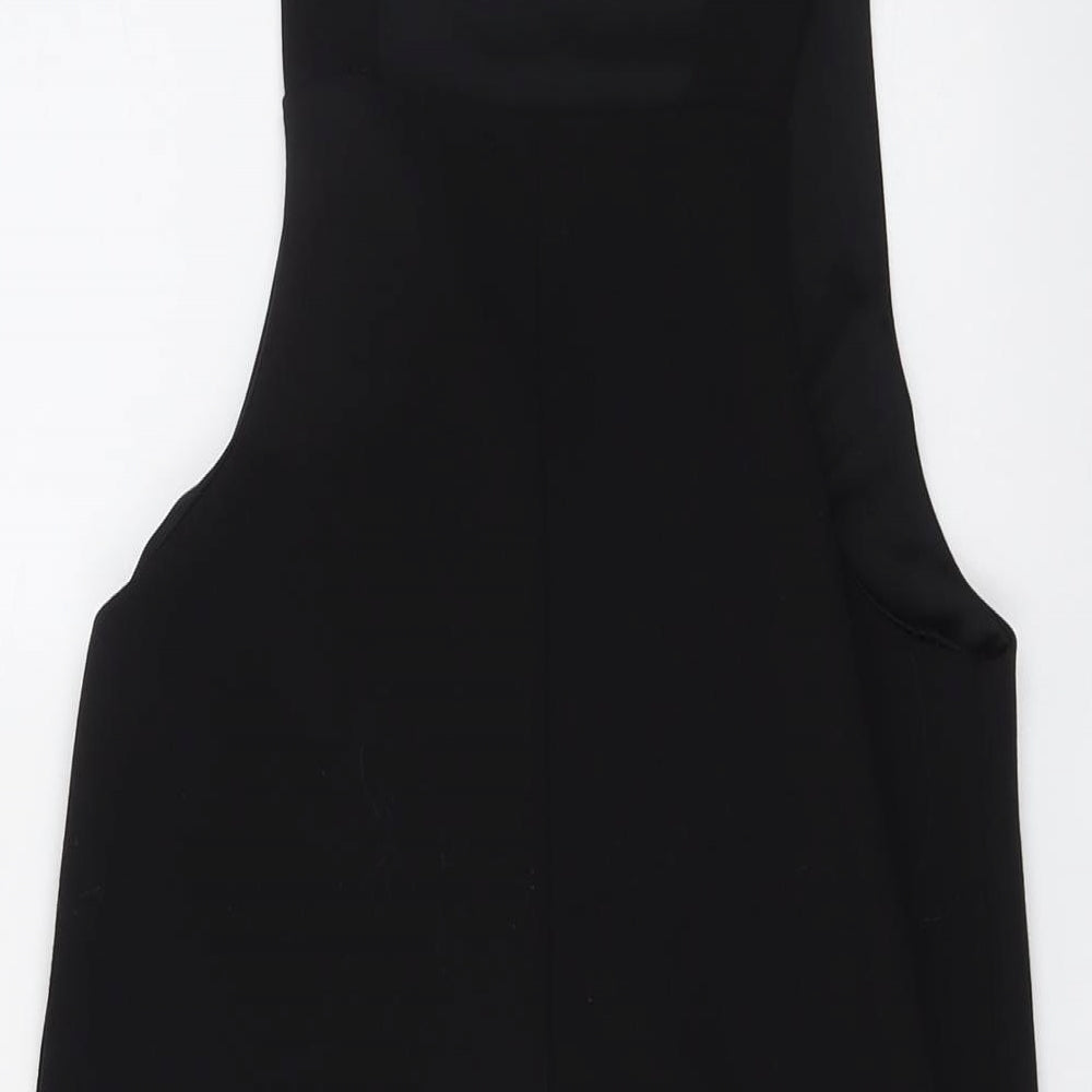 Womens Black Polyester Pinafore/Dungaree Dress Size 8 Square Neck Pullover