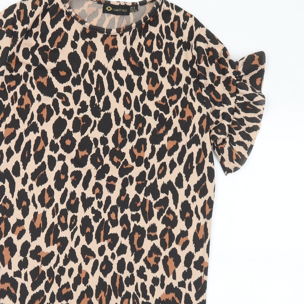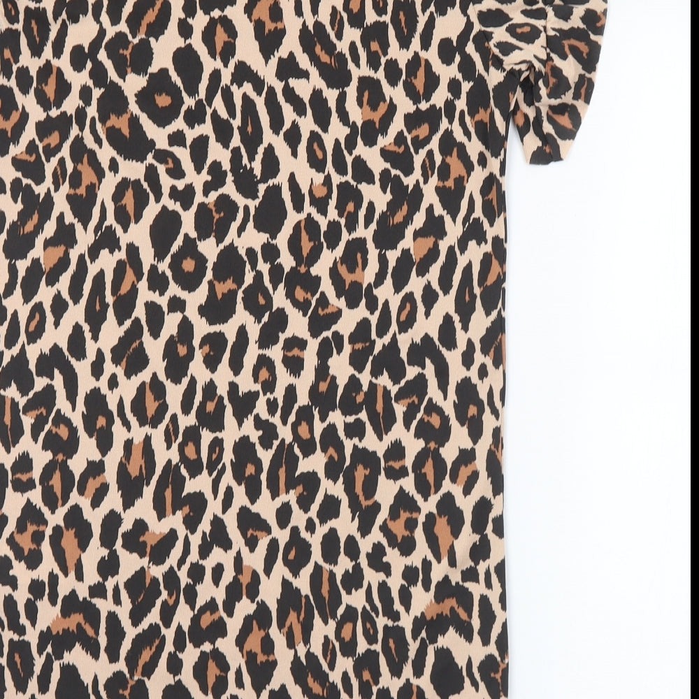 Womens Brown Animal Print Polyester Mini Size 8 Round Neck