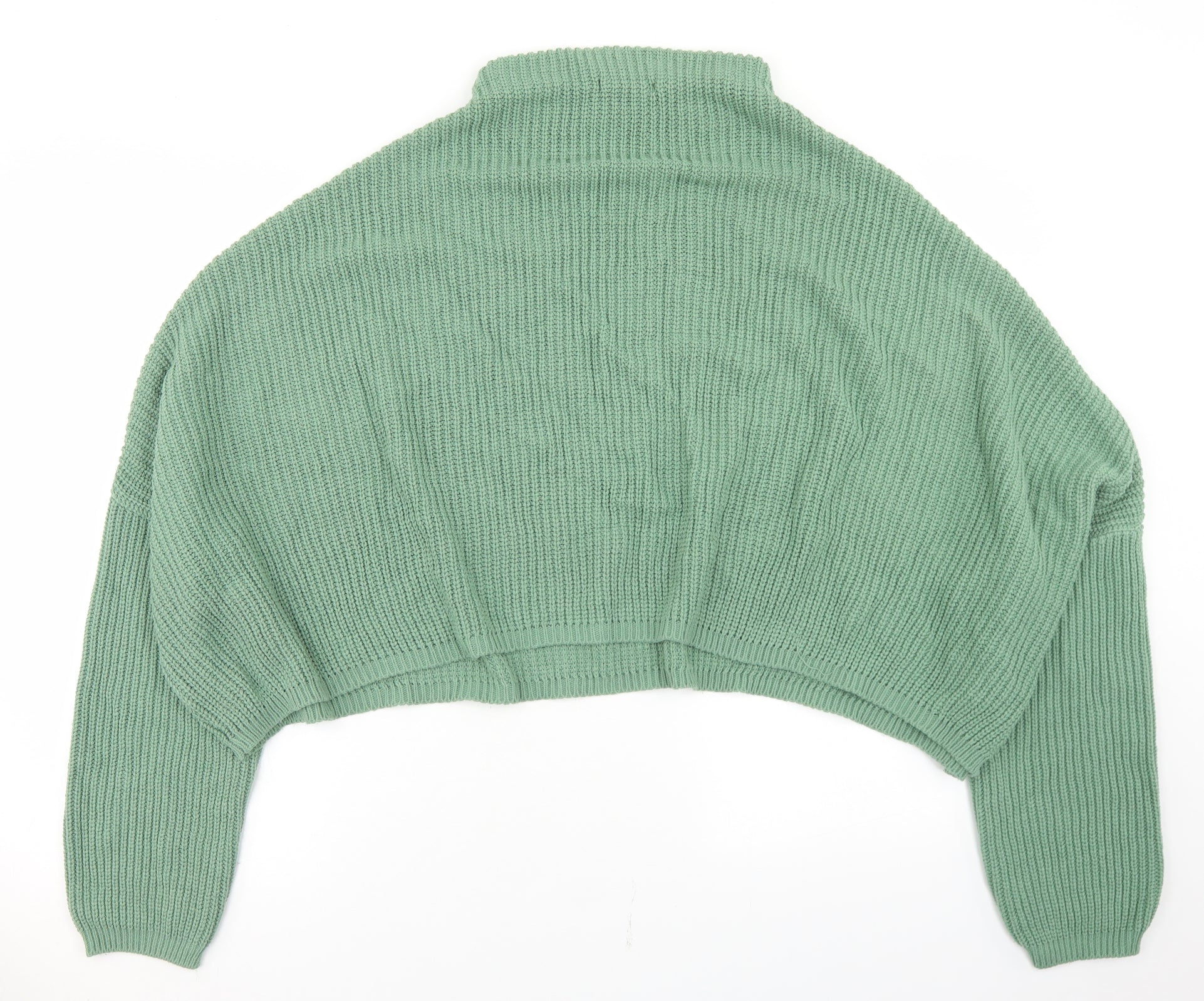 Womens Green Mock Neck Acrylic Pullover Jumper Size M - Cropped