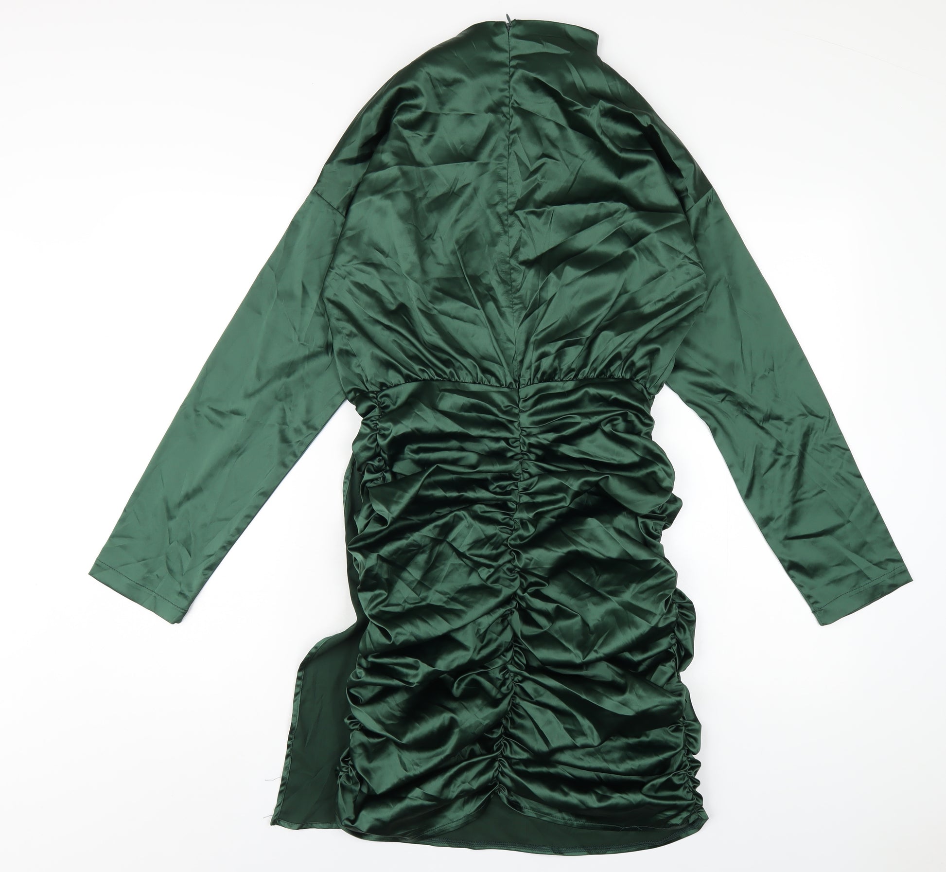 Womens Green Polyester Bodycon Size 10 Mock Neck Zip