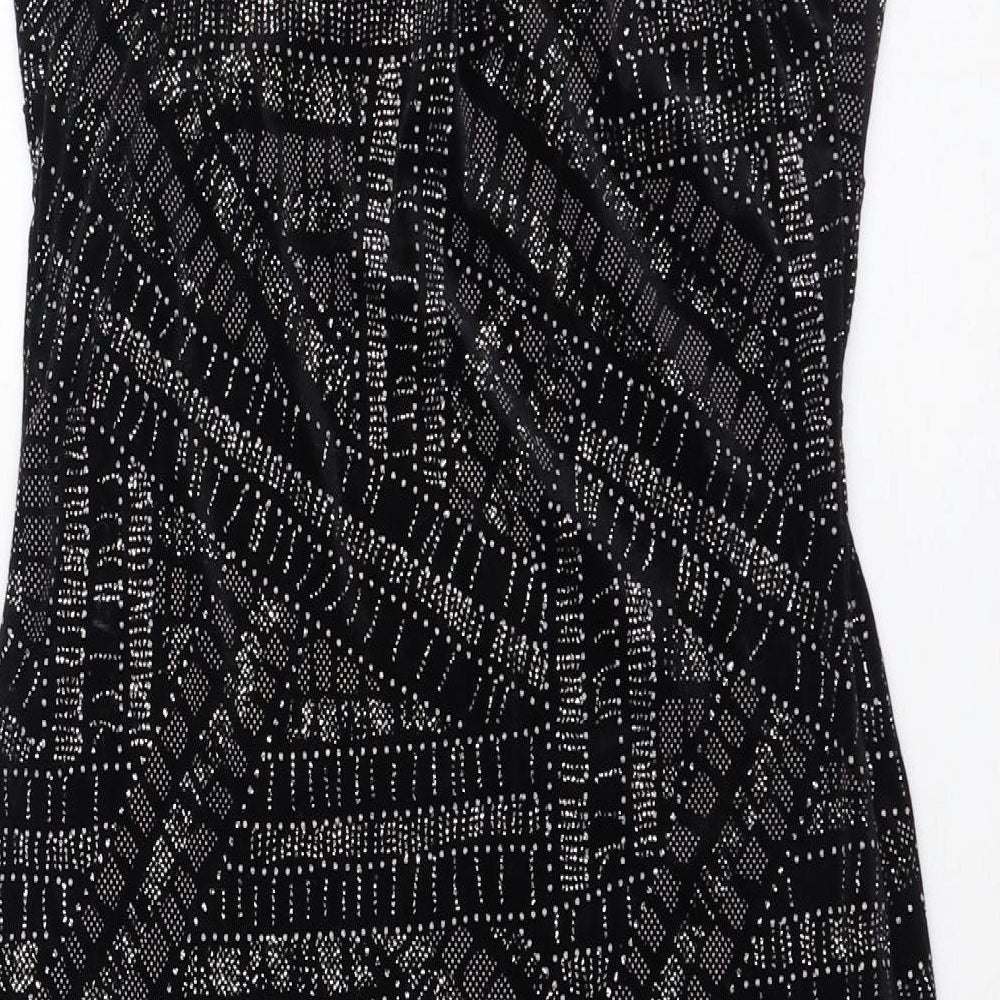 Womens Black Geometric Polyester Pencil Dress Size 12 V-Neck Pullover