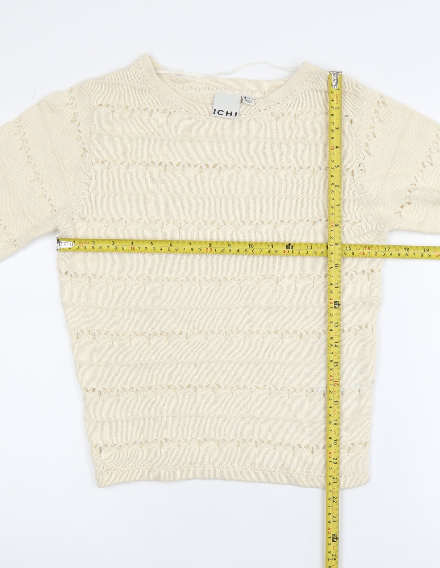 This beautiful beige jumper from ICHI is a versatile and stylish piece perfect for any woman's wardrobe. Crafted from 100% cotton, it offers comfort and breathability, making it an ideal choice for spring, summer, and autumn wear. The open-knit design gives it a delicate, textured appeal while maintaining a soft and lightweight feel, providing both elegance and practicality for everyday use. Designed in a flattering regular fit with a classic crew neckline and long sleeves, this jumper offers timeless style suitable for casual outings or layering over shirts for a smart-casual look. The breathable knit structure makes it a great option for those who value comfort without compromising on sophistication. Its neutral beige shade ensures effortless pairing with jeans, skirts, or tailored trousers, making it a versatile addition to your collection. The fine craftsmanship typical of ICHI garments ensures durability and lasting wear, while the soft cotton fabric adds a touch of natural luxury. Although pre-owned, this piece remains in excellent condition with no visible flaws. Perfect for layering in transitional weather or wearing on its own during mild days, this jumper effortlessly combines contemporary style with everyday comfort. Whether you're heading out for a relaxed coffee date or updating your workwear wardrobe, this ICHI jumper’s understated design and elegant tone make it a must-have staple you'll reach for time and time again. Add this finely knitted cotton pullover to your wardrobe lineup and enjoy a stylish blend of modern Danish design and comfort for seasons to come.