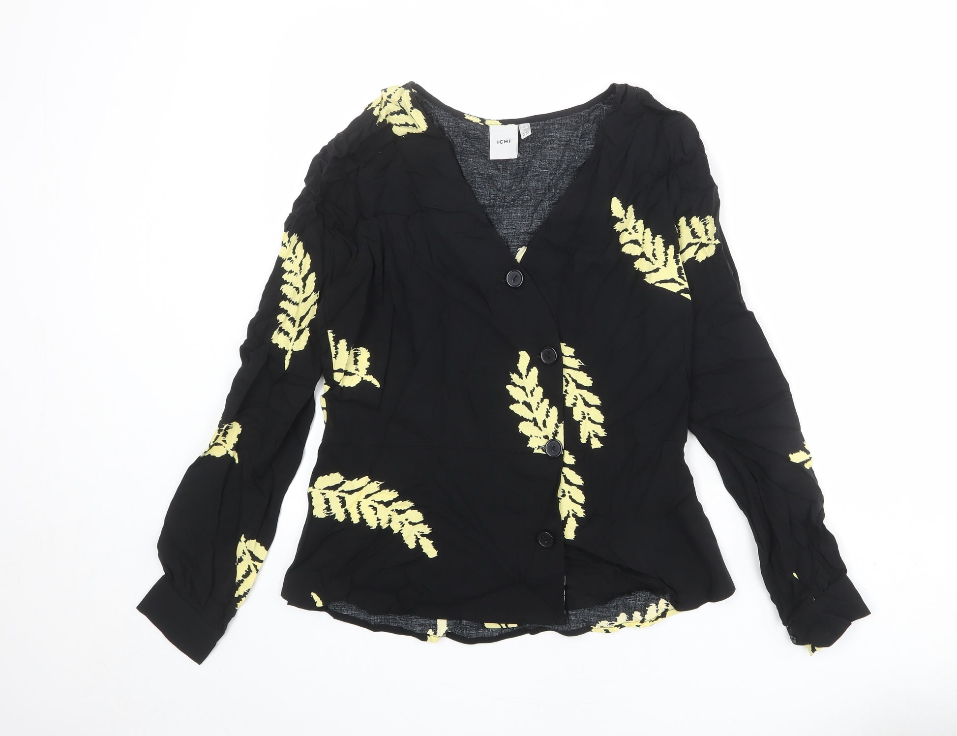 Womens Black Geometric Viscose Basic Button-Up Size 8 V-Neck