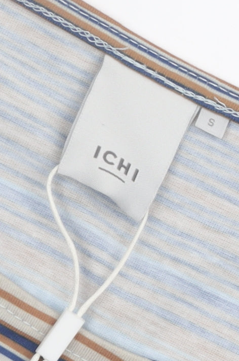 Step into style with this ICHI Women's Multicoloured Striped Bodycon Dress, perfect for adding vibrancy to your casual wardrobe. Featuring a striking blend of hues in a captivating striped pattern, this midi-length dress is crafted from a soft jersey fabric that offers comfort and elegance. Designed with a scoop neckline and long sleeves, it's ideal for wear during the transitional seasons of autumn and spring. The dress showcases a bodycon silhouette, accentuating your figure beautifully, while the stretch material ensures a flattering fit. Fashioned with versatility in mind, it serves as an excellent choice for casual outings, whether you're heading to a brunch, a weekend getaway, or a relaxed day at work. Pair it with your favourite boots or trainers and a denim jacket for a laid-back yet chic look. Furnished with original brand sales tags, this dress arrives in brand-new condition, ready to elevate your style game. Machine washable for easy care, it blends effortlessly into your routine. Grab this eye-catching piece to reflect your bold and bright personality.