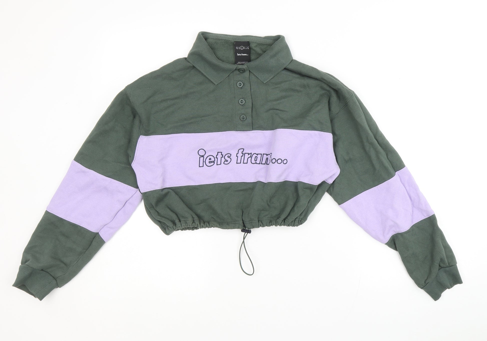 Womens Green Colourblock Cotton Cape Sweatshirt Size S Button -