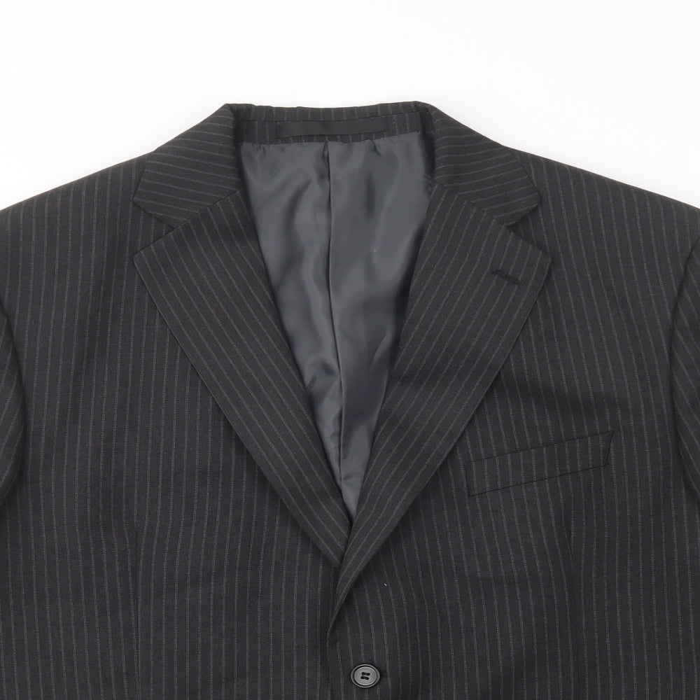 Mens Grey Striped Jacket Blazer Size L Button