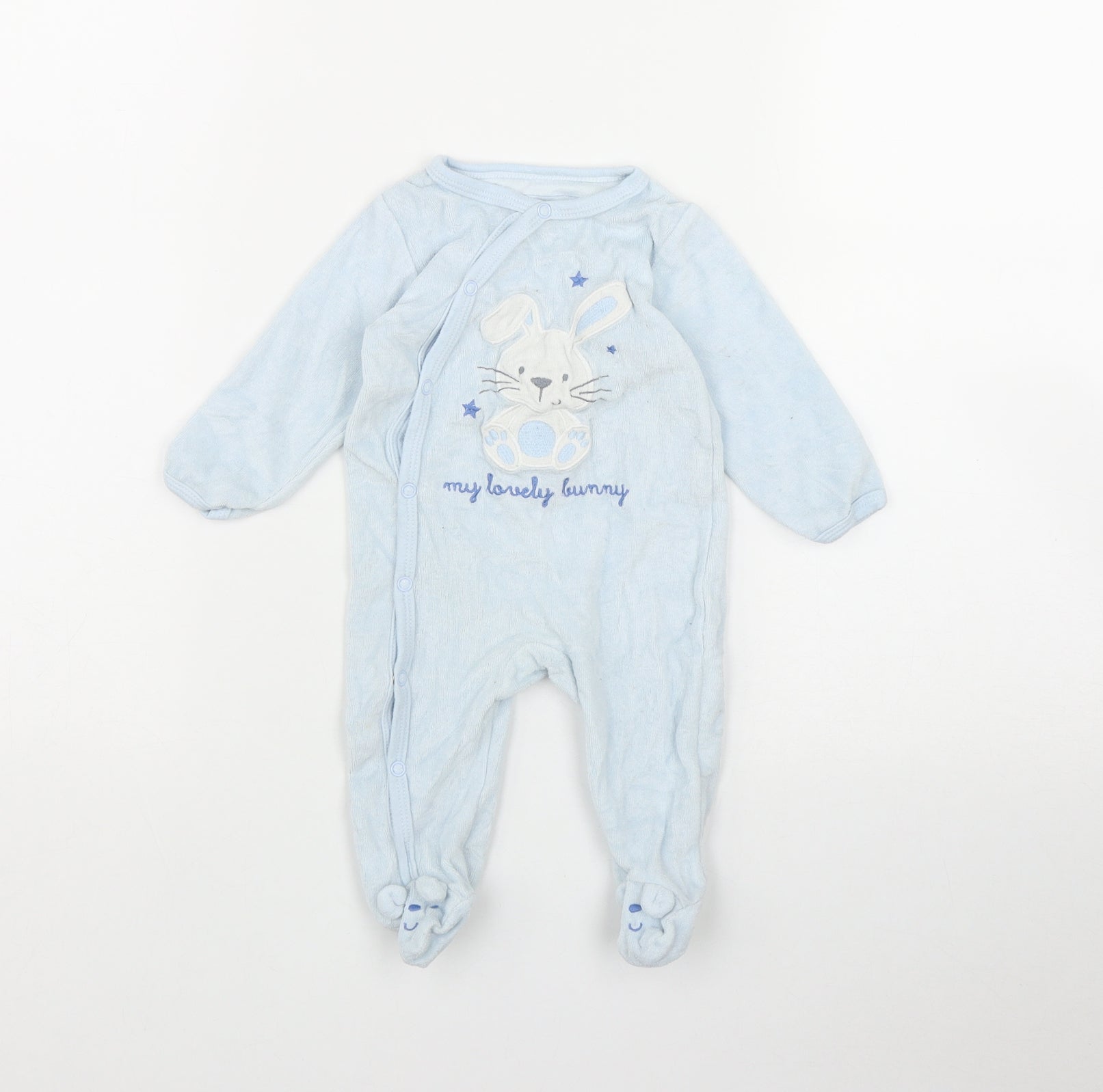 Baby Blue Cotton Coverall One-Piece Size 6-9 Months Snap - Bunny