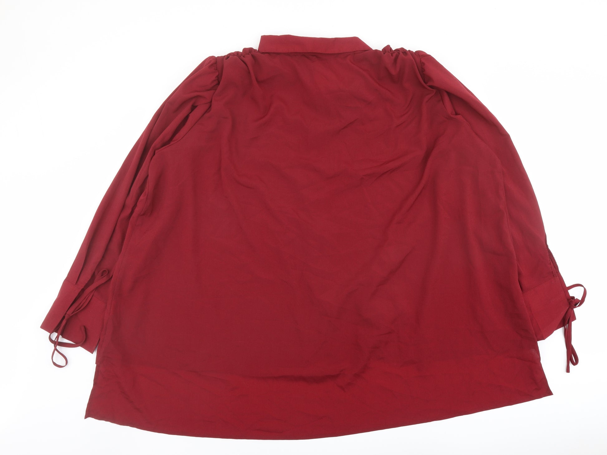 Womens Red Polyester Basic Button-Up Size 18 Collared - Tie Sleeve Detail