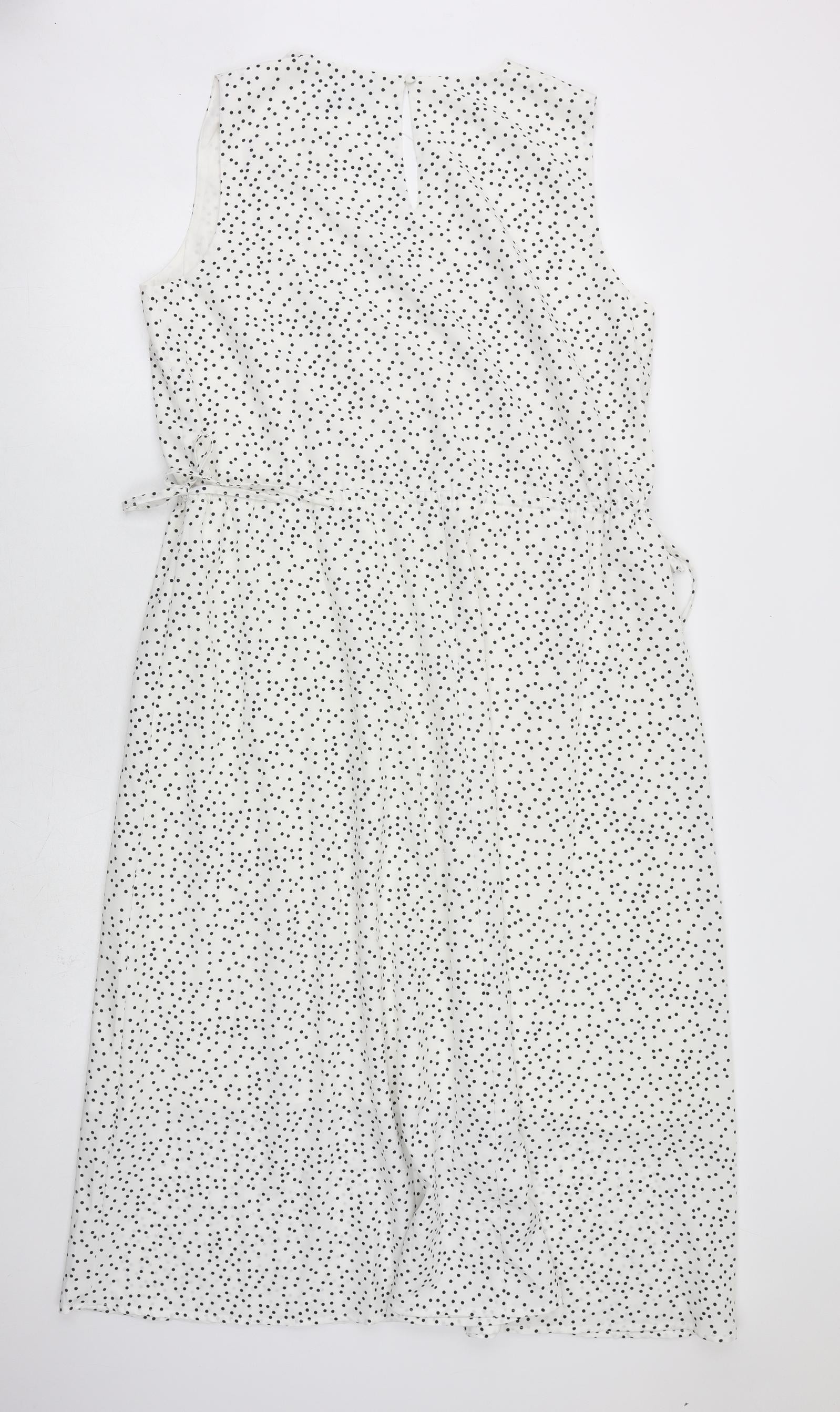 Womens White Polka Dot Polyester A-Line Size 14 V-Neck Tie