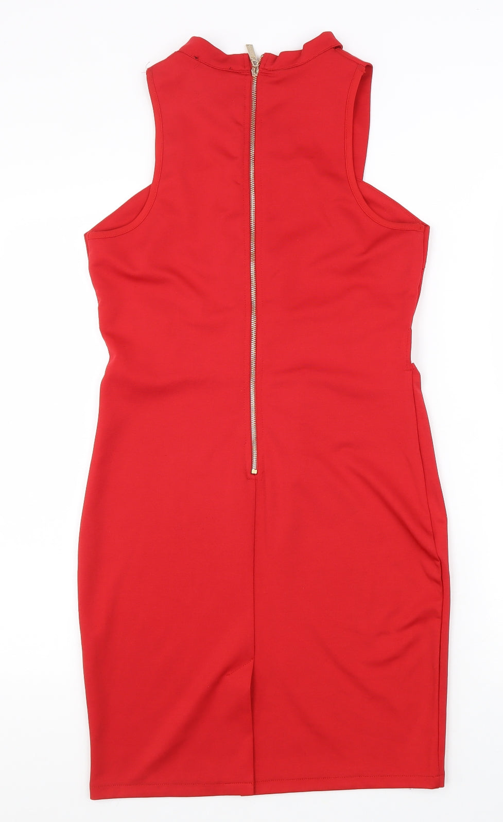 Womens Red Polyester Bodycon Size L Round Neck Zip