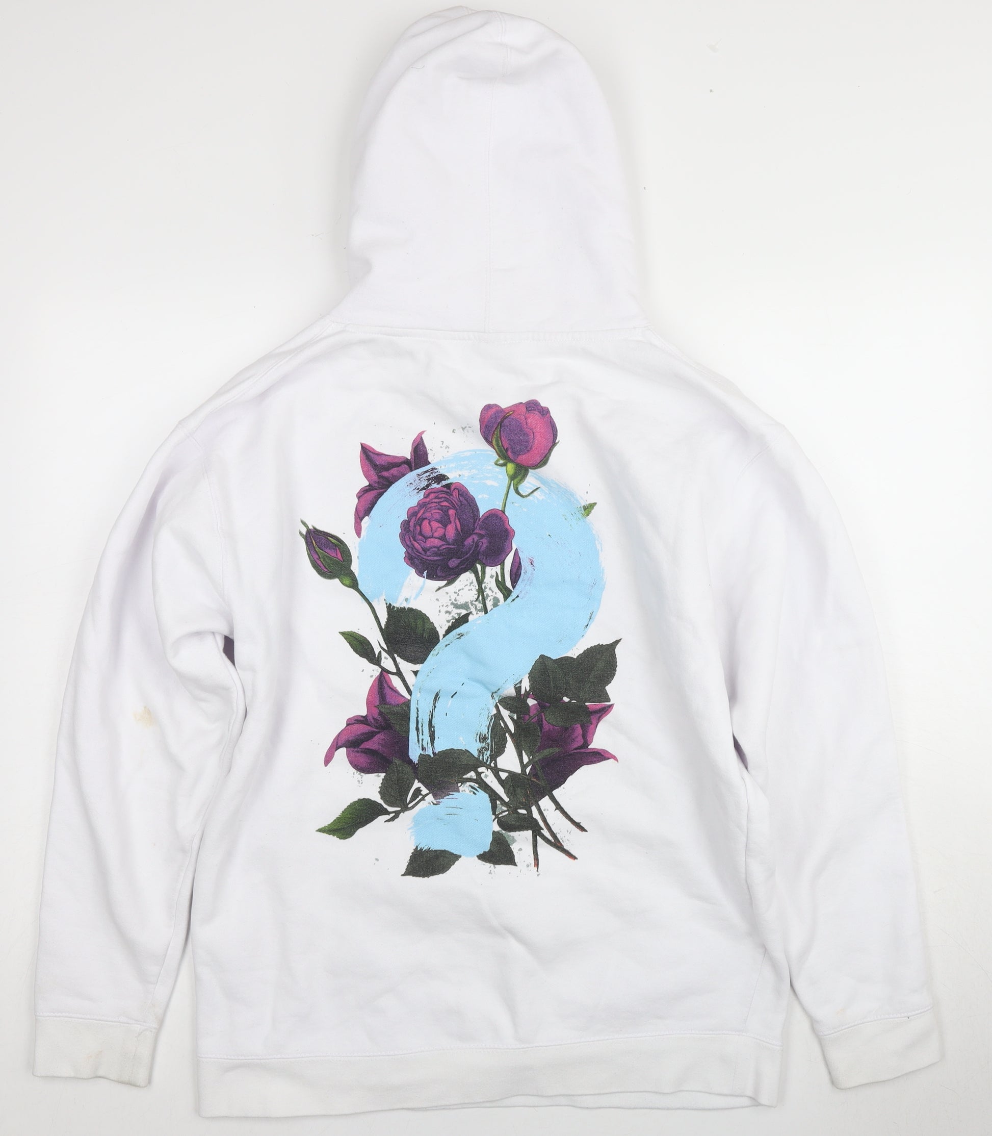 Upgrade your casual wardrobe with this stylish Independent Trading Company hoodie, perfect for unisex adults. The pullover design combines comfort with fashion, featuring a statement floral graphic print that adds a unique touch to the classic plain white hoodie. Made from a soft fleece fabric blend of 70% cotton and 30% polyester, this hoodie offers warmth and durability, making it an ideal choice for both autumn and winter seasons. The roomy hood with a drawstring closure and the convenient kangaroo pocket provide added functionality and comfort. Tailored in a regular fit with long sleeves and a crew neckline, this hoodie ensures you stay cosy while looking effortlessly cool. Whether you're headed to a casual outing or just relaxing at home, this hoodie will keep you in style. Although previously worn and in very good condition, please note light marks on the cuffs. This versatile piece is machine washable for easy care, making it a practical addition to your everyday wear. Make this hoodie your go-to option for casual looks; it’s not just a layer of warmth but a fashion statement. Available at an attractive price, don't miss the chance to enhance your ensemble.