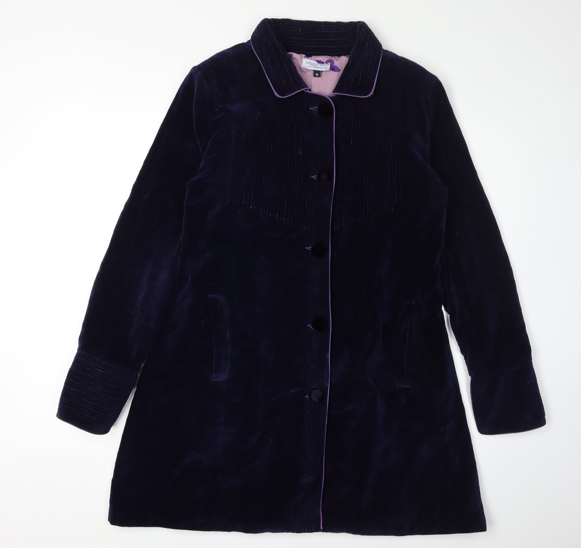Discover effortless elegance with this Indigo Boo women's overcoat. Designed in a rich purple velvet, it exudes a hint of luxury perfect for autumn and winter. The long style with a collared feature and button accents adds a classic touch to any outfit, making it ideal for casual wear. The coat's regular fit ensures comfort without sacrificing style, making it a versatile addition to your wardrobe. Though previously enjoyed, it remains in excellent condition, showing no visible flaws. A must-have for those who appreciate understated sophistication.