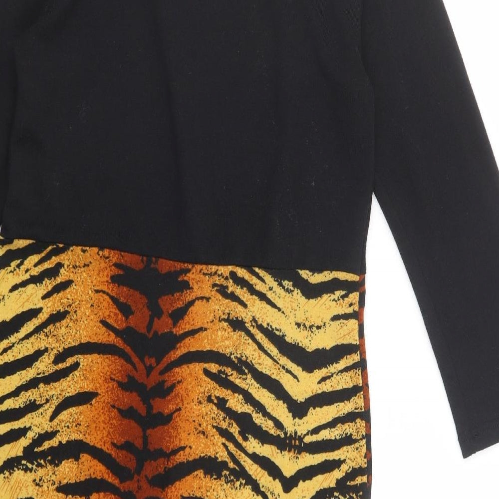 Womens Black Animal Print Wool Bodycon Size M Crew Neck Pullover