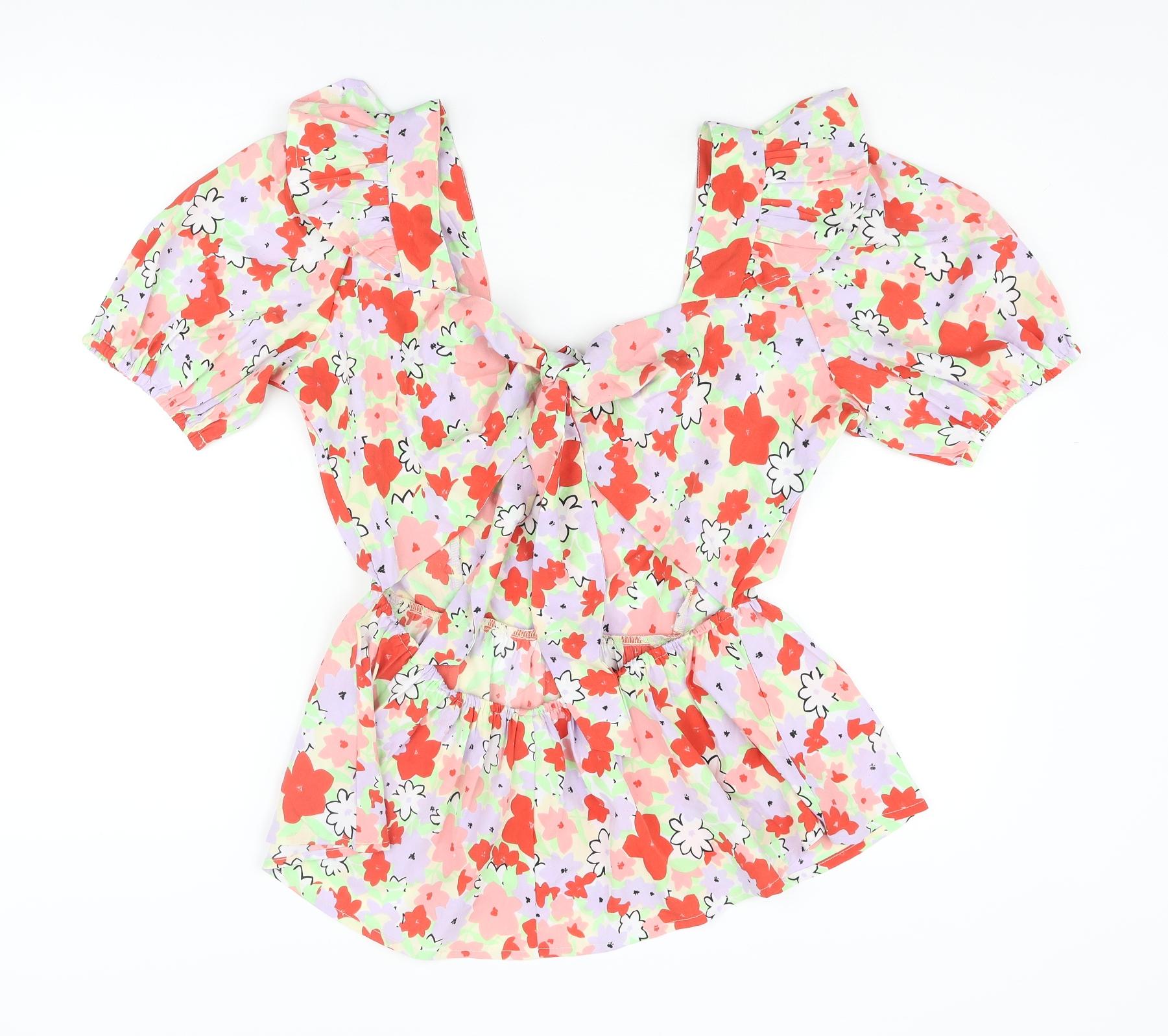 Womens Multicoloured Floral Polyester Basic Blouse Size 12 Square Neck