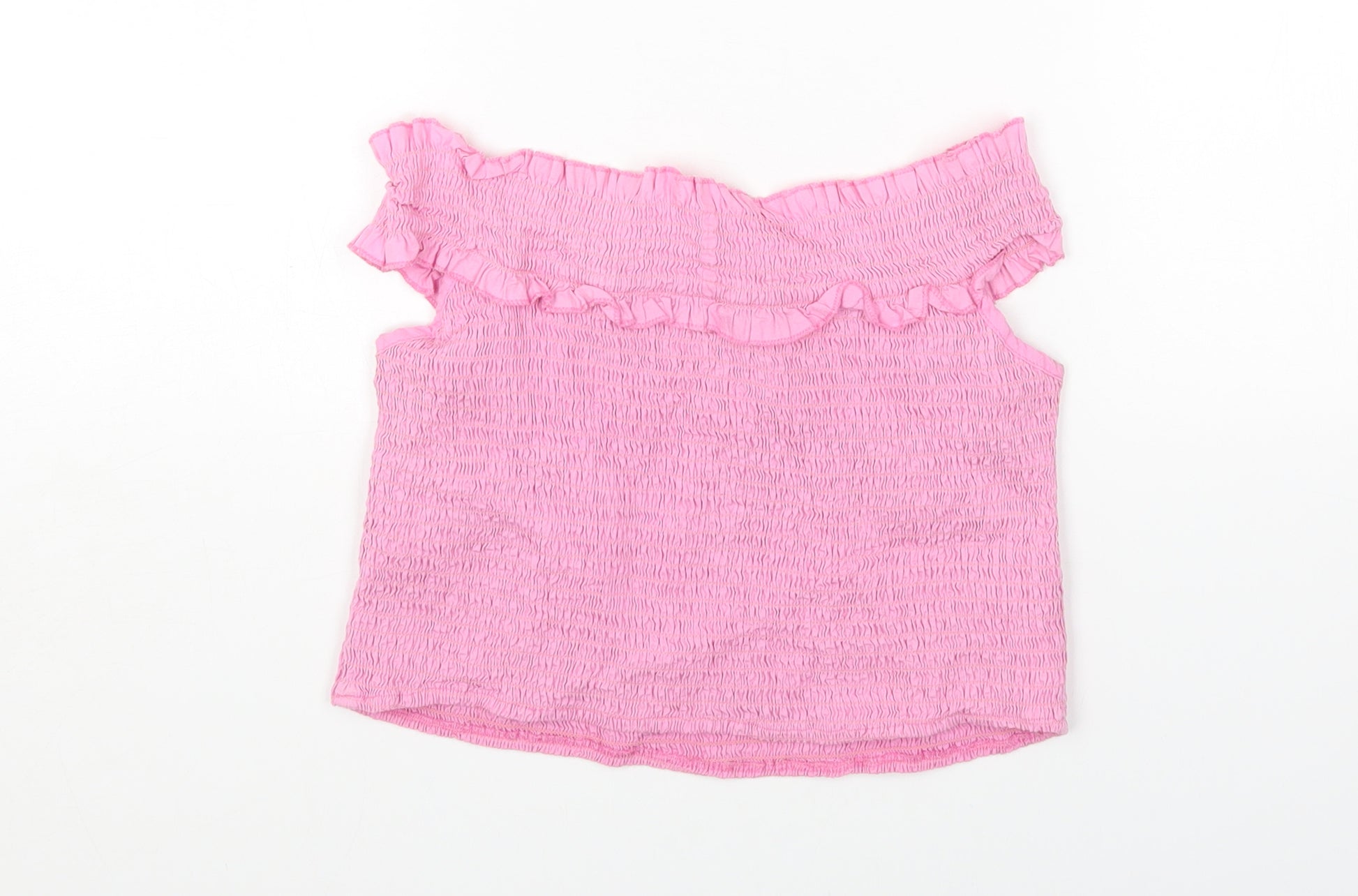 Womens Pink Cotton Basic T-Shirt Size 14 Off the Shoulder