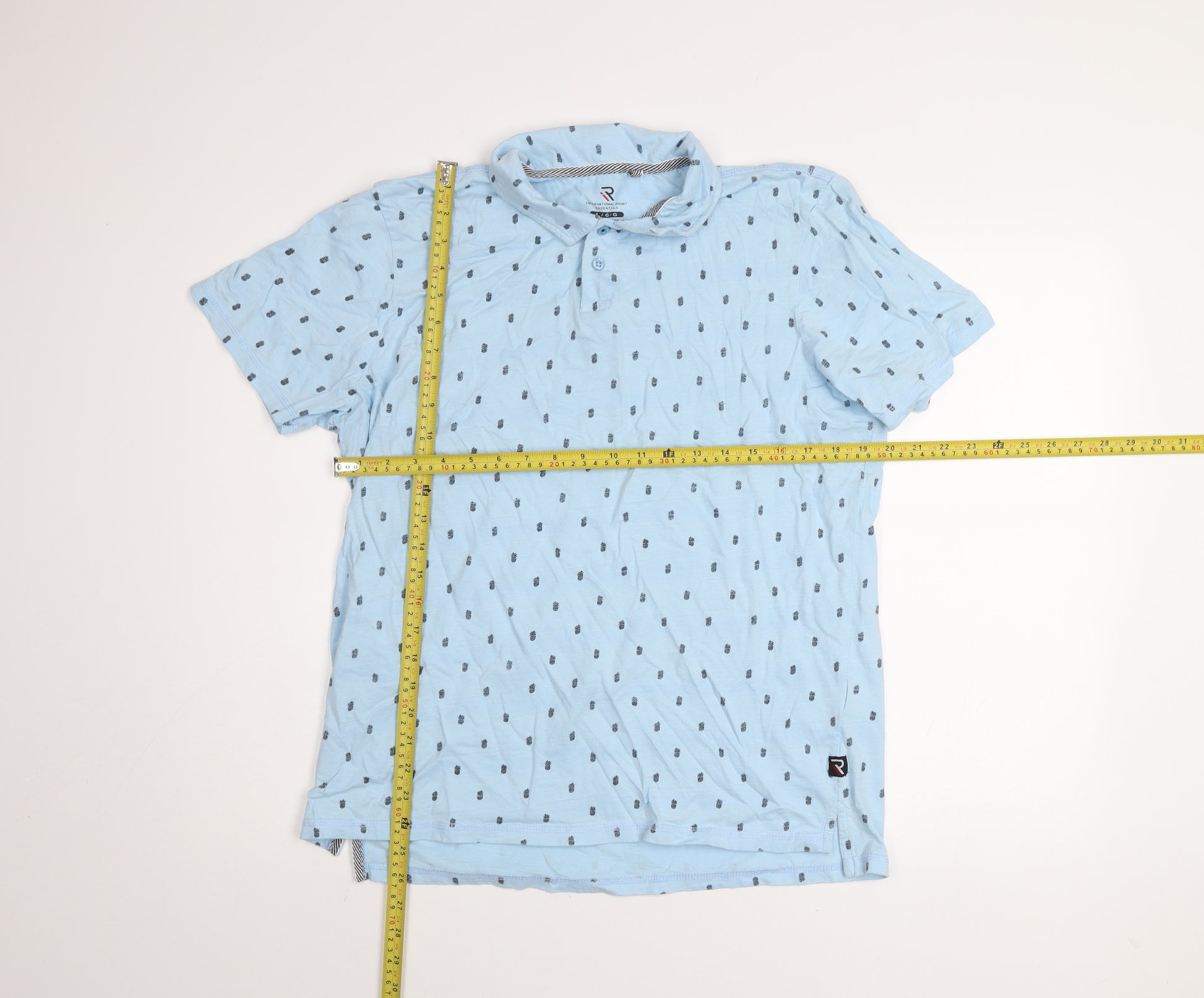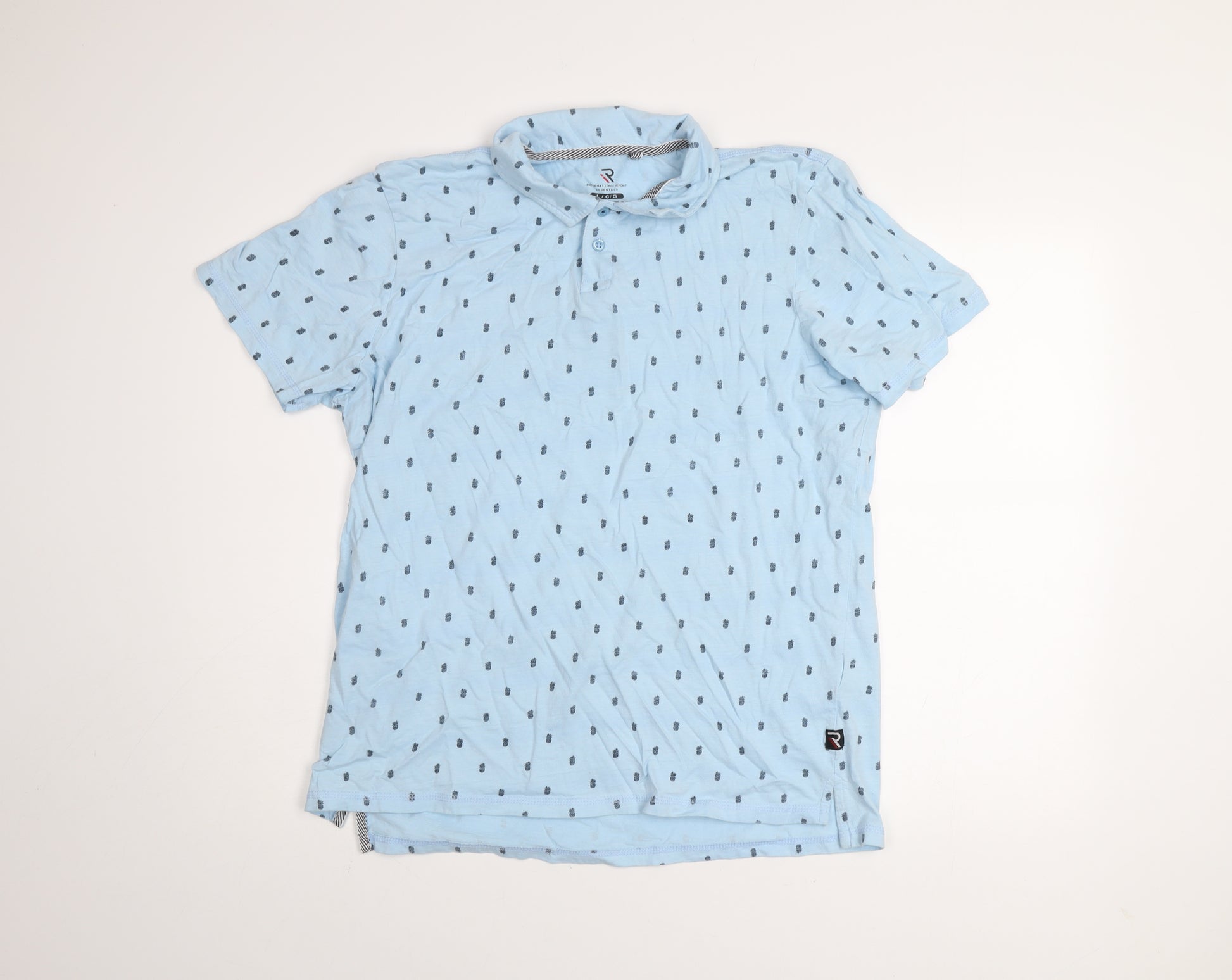 Refresh your casual wardrobe with this stylish men’s polo shirt from International Report Essentials. Crafted entirely from 100% cotton, this breathable and lightweight shirt offers exceptional comfort, perfect for warmer days or layering during the cooler months. Presented in a soft blue hue with a subtle geometric print, this piece adds personality without overpowering your look. The collared neckline and button placket bring classic polo sophistication, while the regular fit ensures a relaxed yet tidy silhouette suitable for everyday wear. The short sleeves allow for freedom of movement, making it ideal for casual outings, holiday wear, or relaxed work settings. Designed for men who appreciate simplicity with modern charm, this polo shirt features a discreet logo accent that enhances its quality appeal. Machine washable for easy care, this shirt is made to look good and last, maintaining its shape and softness after every wash. Perfect for pairing with jeans, chinos, or shorts, it’s versatile enough to take you from an afternoon stroll to a casual evening out. Its light cotton fabric provides breathable comfort through the spring and summer seasons, making it a wardrobe essential. In very good used condition, this garment shows only minimal signs of wear with light creasing that can be easily smoothed out. Whether you’re refreshing your daily rotation or looking for a reliable everyday option, this International Report Essentials blue cotton polo is an excellent pick for effortless, laid-back style. Available in size Large, this shirt provides a flattering fit without compromising comfort, ensuring you stay stylish whatever the occasion. Make it yours today and enjoy timeless casual sophistication in a comfortably refined package.