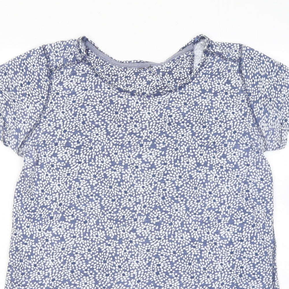 Womens Blue Floral Cotton Basic T-Shirt Size 12 Round Neck