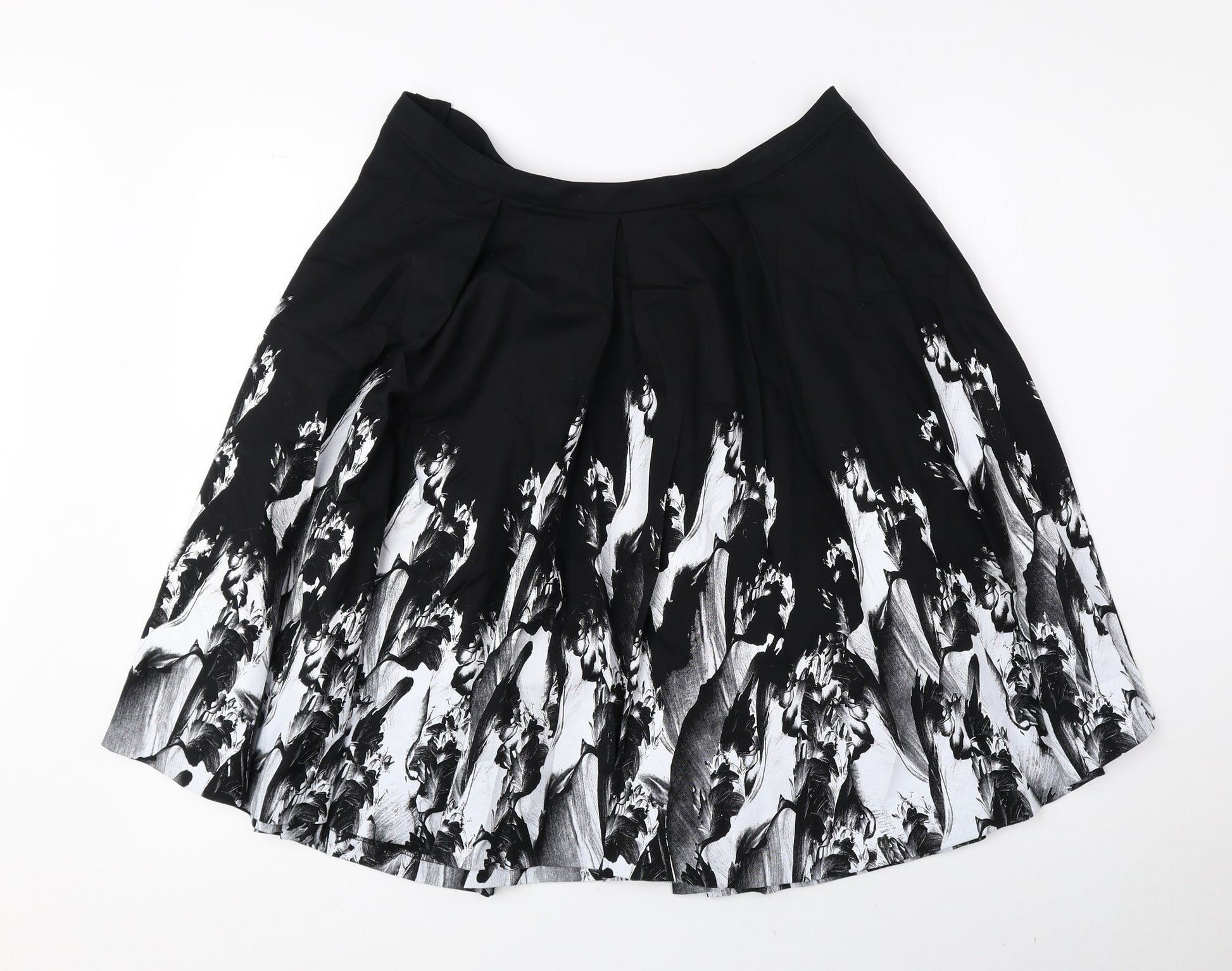 Womens Black Geometric Cotton A-Line Skirt Size 16 Zip