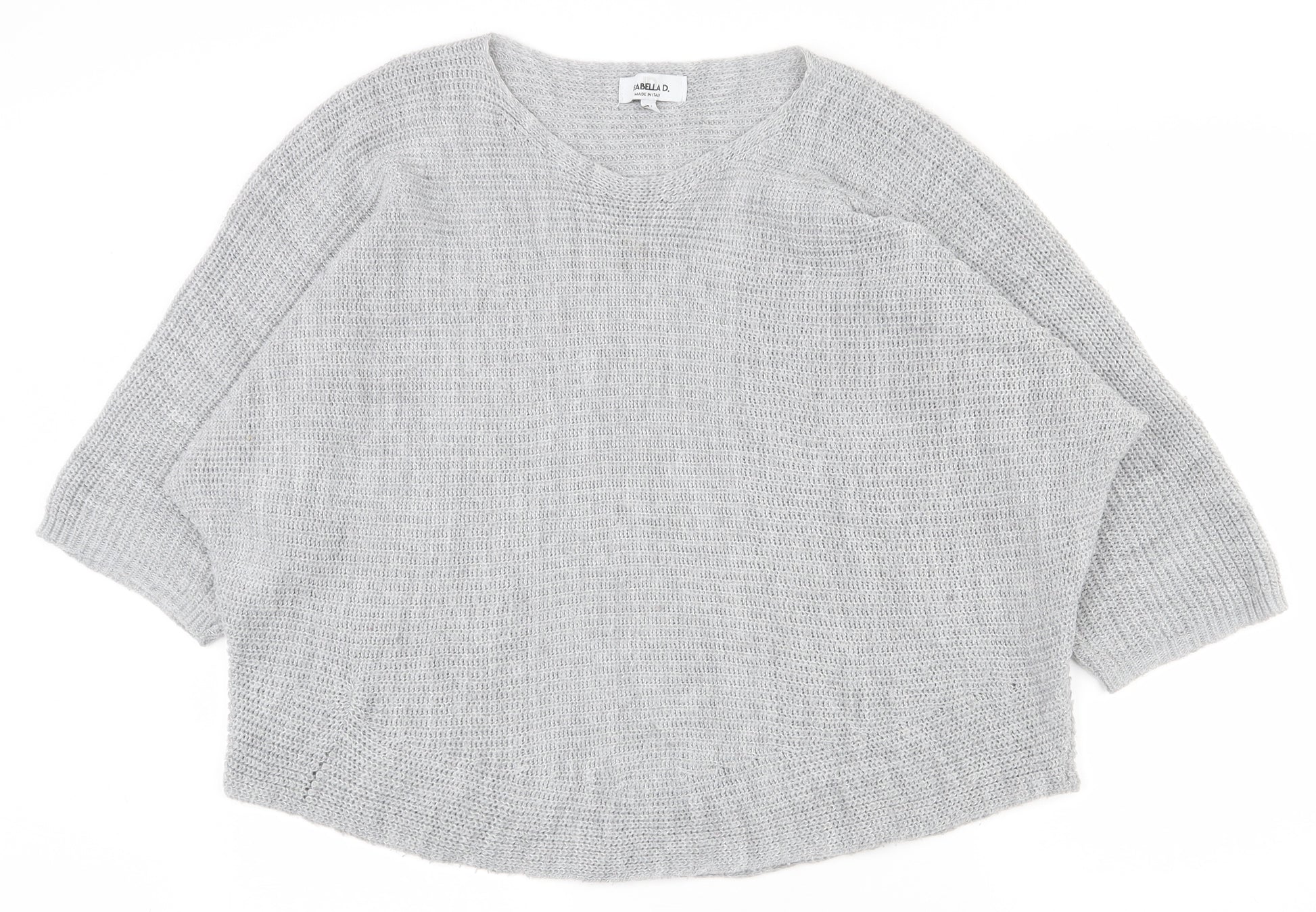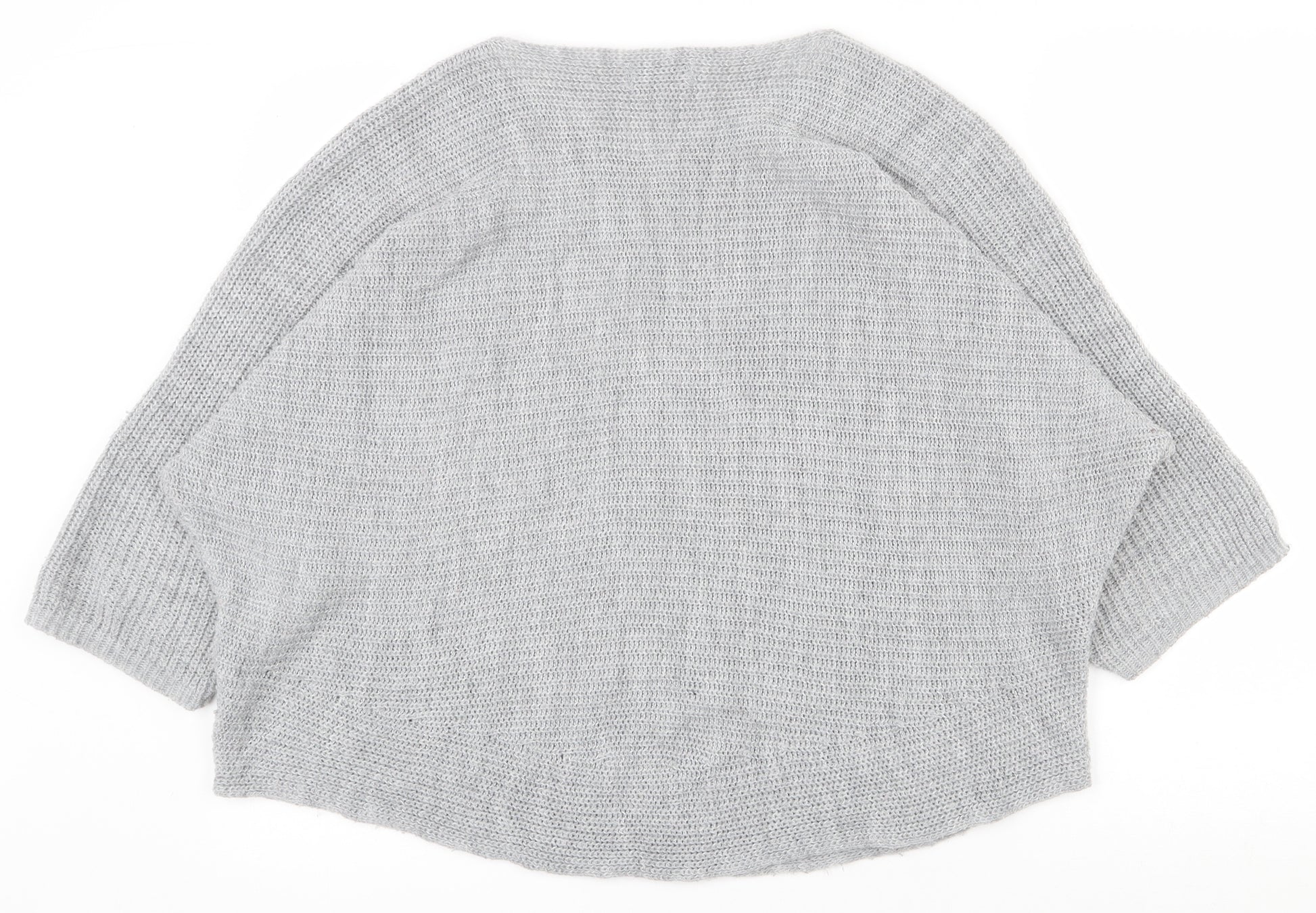 Womens Grey Round Neck Acrylic Pullover Jumper Size 2XL