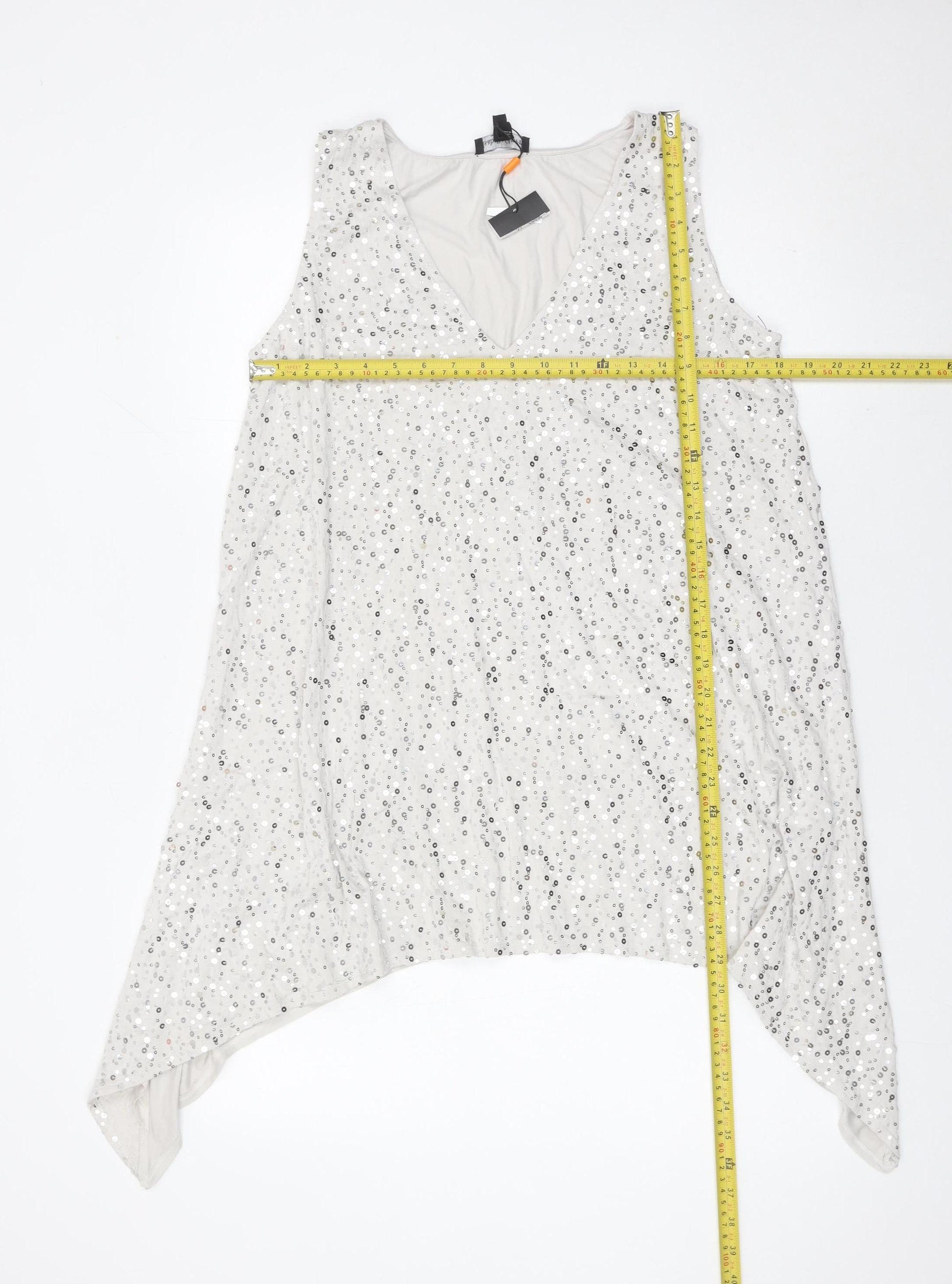 Elevate your wardrobe with this stunning Isabella Oliver women’s blouse, designed for those who want to make a statement while staying stylish and comfortable. Crafted from a high-quality fabric blend, this tunic top features a body made of 95% viscose with 5% elastane, allowing for a soft feel against the skin while providing just enough stretch for a flattering fit. The elegant lightweight jersey fabric base is beautifully complemented by dazzling silver sequins, making this the perfect top for evenings out, parties, or special occasions.This sleeveless tunic blouse has a chic V-neckline that elongates the neck and frames the collarbone charmingly, while the relaxed regular fit ensures comfort without compromising on style. Designed in a shimmering silver shade, it brings a sophisticated yet striking appeal that works perfectly for cocktail events, celebrations, and festive gatherings. The fully lined interior enhances comfort and durability, meaning it won’t feel scratchy against your skin while you enjoy your night.Combining effortless glamour with understated elegance, this Isabella Oliver blouse embraces a versatile silhouette that can be styled in multiple ways. Pair it with sleek trousers or a pencil skirt for a polished evening look, or wear it with skinny jeans and heels for a more laid-back approach with a touch of glamour. Its pullover design ensures ease of wear, while the sequinned surface adds extra sparkle for that show-stopping effect.Ideal for the modern woman who loves a touch of luxury in her wardrobe, this gorgeous tunic blouse is an essential addition for party season or any occasion where you want to stand out. With Isabella Oliver’s renowned reputation for chic and timeless style, this top is a piece you’ll love to wear time and again.Make room in your collection for this beautiful, brand new with tags sleeveless tunic blouse and let its silver sparkle take centre stage at your next special event.