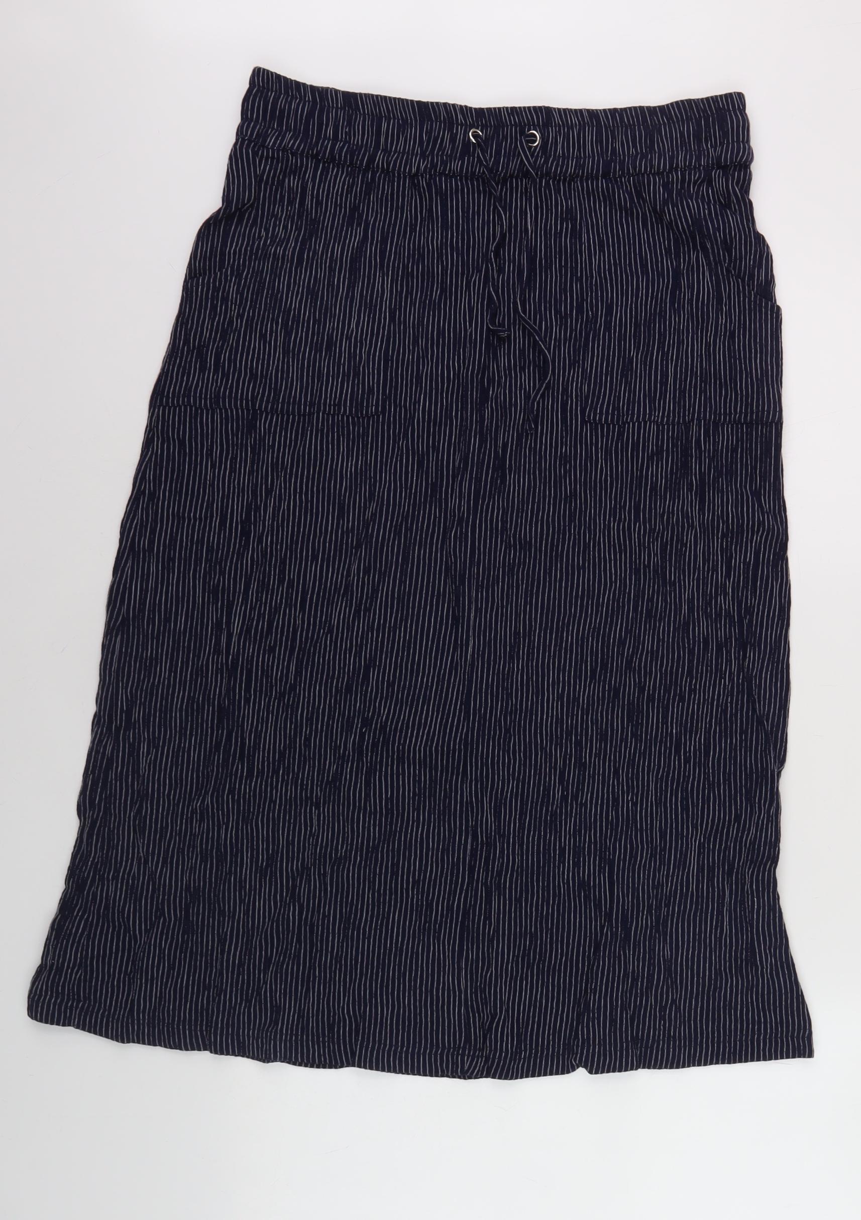 Elevate your wardrobe with this stylish Isle Collection skirt, perfect for any occasion. This navy blue skirt features a chic stripe pattern and is designed in an A-line style that flatters all figures. Crafted for the modern woman, it offers an elastic waist for a comfortable fit, making it a great choice for both casual outings and more formal events. The skirt is knee-length, providing a versatile look that can be dressed up or down. Its lightweight material makes it ideal for all seasons, whether paired with a cosy sweater or a light blouse. The practical drawstring closure ensures an adjustable fit, and the two pockets add a functional touch to this fashionable piece. Made from quality materials, this skirt promises durability along with great style. A perfect addition to your collection, it's easy to care for and machine washable. Whether heading to work or out for a casual day, this Island Collection skirt is your go-to choice for effortless elegance.