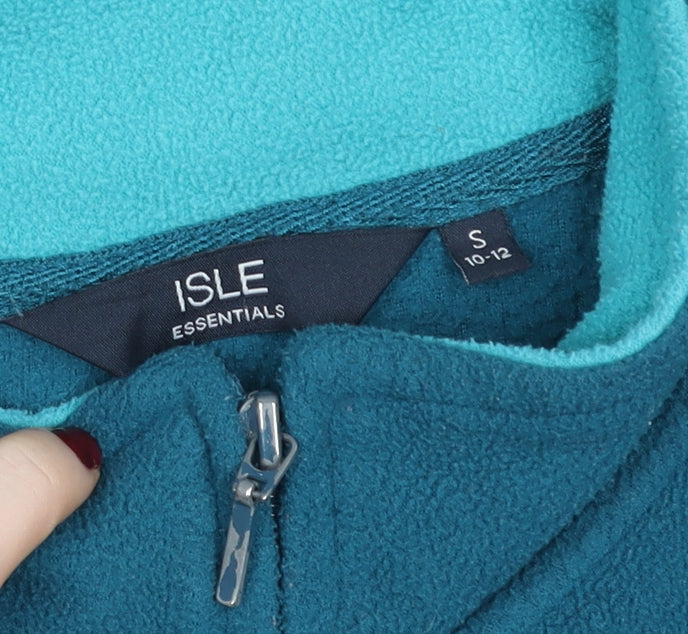 Stay cosy and stylish with this ISLE Essentials women's fleece jacket in a rich blue colour. Crafted entirely from super-soft polyester fleece, this lightweight yet warm layer is perfect for the cooler months or transitional weather. The jacket features a simple and practical design with a full-zip front, long sleeves, and a stand-up collar for added warmth. Designed in a regular fit and short length, it provides comfort and ease of movement for everyday wear. Ideal for casual outings, travel, or even relaxed work settings, this piece combines functionality and style effortlessly. The smooth zip fastening enhances convenience, while the breathable fleece fabric ensures all-day comfort whether worn indoors or as an outer layer. The interior is soft and cosy, keeping you insulated without feeling bulky. Subtle shaping seams along the body offer a flattering silhouette, and the minimal aesthetic makes it easy to layer over a tee or under a coat. This versatile jacket transitions smoothly between seasons, making it an excellent choice for autumn strolls, spring walks, or layering through winter. Though pre-owned, it's in very good condition with only a faint mark near the lower front area—barely noticeable during wear. Machine washable for easy care, it’s both practical and easy to maintain. Perfect for those who appreciate simple design and reliable comfort, this fleece is a wardrobe essential that delivers warmth without weight. Pair it with jeans or leggings and trainers for an effortlessly chic, casual look. A wonderful addition to any woman’s outerwear collection at a great value.