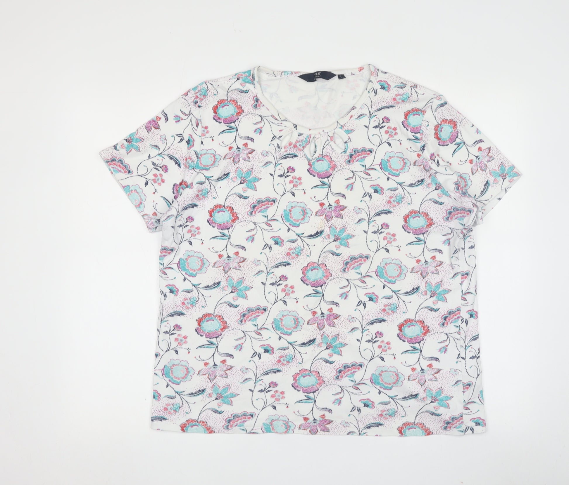 Add a touch of vibrant charm to your wardrobe with this Isle Essentials Women's Floral T-Shirt in size L. Crafted for comfort and style, this casual t-shirt features a delightful multicoloured floral pattern, making it a perfect choice for the spring and summer seasons. The short sleeves and crew neckline offer a classic look that pairs effortlessly with jeans or shorts.This t-shirt is designed for a regular fit, providing an easy-to-wear and comfortable option for everyday outings or relaxed weekends. Its regular size type ensures a flattering fit for most body types. Made with quality materials, it's durable and perfect for casual occasions, making it a versatile addition to your fashion collection.Whether you're heading out for a casual lunch with friends or enjoying a leisurely day in the sun, this Isle Essentials t-shirt is your go-to choice for laid-back style. With its cheerful floral design and excellent condition, it's sure to become a staple in your wardrobe. Don't miss the opportunity to add this relaxed, stylish piece to your collection.