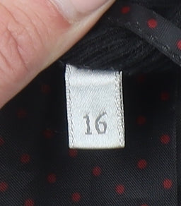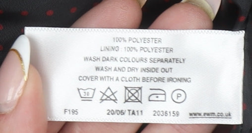 Elevate your wardrobe with this timeless black blazer from Isle, tailored to perfection for a flattering silhouette. Designed for modern women who appreciate refined style and comfort, this regular fit single-breasted blazer offers a polished look ideal for business, professional, or formal settings. The jacket features a classic notch lapel, three front buttons, and two flap pockets that blend effortless elegance with practicality. Crafted from 100% woven polyester, it delivers long-lasting wear, easy maintenance, and a smooth finish that resists creasing throughout the day. Fully lined in matching black polyester with fine red polka dot detailing, it ensures a sleek, comfortable fit against the skin. Perfect for layering over blouses or dresses, this versatile piece transitions seamlessly from office meetings to evening events. The structured tailoring and clean seams add a contemporary edge that complements a wide range of outfits, from smart trousers to pencil skirts. Designed in a UK size 16, it offers a regular fit suitable for most body types, enhancing both shape and confidence. The durable polyester fabric allows machine washing for easy care while maintaining its crisp look. Suitable for autumn through winter, it performs equally well across multiple seasons. Style it with heels and minimal accessories for a professional ensemble or dress it down slightly for a smart-casual feel. In excellent pre-owned condition with only light signs of wear, this blazer is ready to bring enduring sophistication to your collection without compromise on comfort or quality.