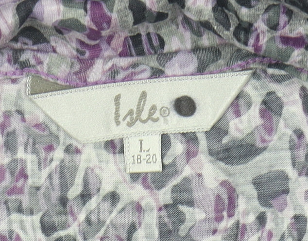 Dive into the wild with this chic Isle Women’s Multicoloured Scoop Neck Top in size L. Adorned with an alluring animal print, this top is perfect for those who love to make a statement. Crafted from a blend of 68% Polyester and 32% Cotton, it offers durability along with a soft touch against your skin. The vibrant mix of colours ranging from purples to soft blues makes it not only eye-catching but also versatile, pairing wonderfully with trousers or jeans for a casual, yet stylish look.Designed for the modern woman, this top boasts classic short sleeves and a flattering scoop neckline that complements your natural contours. The classic/fitted sleeve ensures a comfortable fit while enhancing your shoulder line. Perfect for casual outings, the Isle top embraces your lifestyle, offering a relaxed fit with its regular size type. Add a dash of boldness to your wardrobe and enjoy effortless styling with this must-have piece.Machine washable for easy care, this top allows you to focus on your busy lifestyle without the hassle of complicated garment care routines. Whether you’re spending a leisurely day out or catching up with friends over brunch, this top is your go-to choice. Enhance your casual collection today with the Isle Women’s Multicoloured Scoop Neck Top, where comfort meets style.