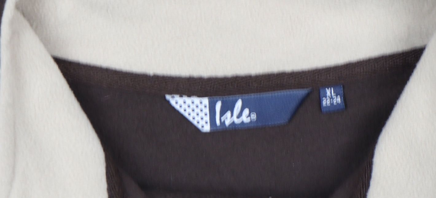 Stay cosy and effortlessly stylish with this Isle women’s brown fleece jacket. Crafted entirely from 100% polyester fleece, it provides a soft, warm, and comfortable feel that’s perfect for cooler days. The jacket features a classic full zip closure and a lightweight yet insulated construction, making it a versatile addition to your casual wardrobe. Designed in a rich chocolate brown hue, it’s ideal for layering with jeans, leggings, or outdoor trousers. The regular fit ensures ease of movement, while the lined interior adds an extra layer of warmth and comfort. The mid-length cut offers a flattering silhouette, striking a balance between casual comfort and smart practicality. Its simple, no-pattern fleece design gives it a timeless appeal suitable for everyday wear—whether you’re heading out for a walk, running errands, or travelling. Easy to care for and machine washable, this jacket combines durability with a soft-touch finish. The long sleeves and high collar provide added protection against the chilly breeze, while the full zip front allows temperature control to suit the season. Perfect for autumn or winter wear, this women’s fleece jacket by Isle offers both functionality and understated style. In very good condition with only light signs of previous use, this piece remains fresh, clean, and ready to wear. A reliable choice for outdoor activities, work, or simply layering up in style. Priced affordably, this jacket is a warm essential that complements any casual outfit, bringing comfort and simplicity to your seasonal wardrobe.