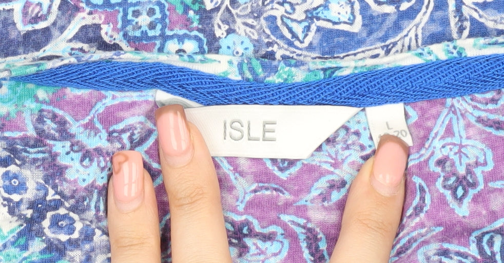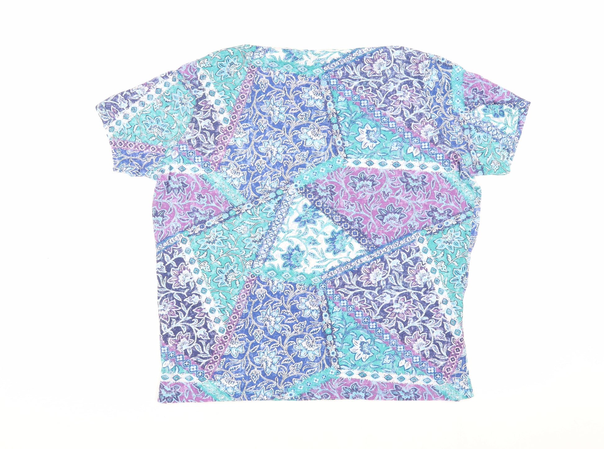 Add a vibrant touch to your wardrobe with this Isle women's multicoloured floral T-shirt. Perfect for spring and summer, this comfortable tee features short sleeves and a flattering V-neckline, making it ideal for casual outings or relaxed indoor wear. Crafted from a soft blend of polyester and cotton, it offers a breathable and lightweight feel. The pullover style promotes easy wear, ensuring you can quickly achieve an effortlessly chic look. This T-shirt's floral pattern adds a splash of colour and charm, making it a versatile piece for pairing with jeans, shorts, or skirts. Despite being used, it remains in excellent condition with no visible signs of wear. Enjoy the comfort and style of this beautiful floral tee, perfect for any casual occasion.