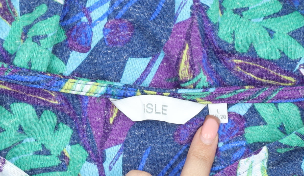 Elevate your casual wardrobe with the ISLE Women's Multicoloured Floral T-Shirt, a vibrant and stylish addition that's perfect for everyday wear. Crafted from a comfortable and lightweight blend of polyester and linen, this t-shirt offers a breathable feel for those warm summer days. Its short sleeves and classic round neckline make it a versatile piece that pairs effortlessly with jeans, shorts, or skirts for a relaxed yet chic look. With a regular fit, it features an eye-catching floral pattern in a multitude of hues, bringing a pop of colour to your outfit. Ideal for casual occasions, this t-shirt is both machine washable and durable, ensuring easy care and longevity. Offered in size L, it promises a comfortable fit for regular size wearers. Despite being gently used, it remains in excellent condition, free from any noticeable defects, making it a valuable piece for your collection. Available at an attractive price point, this t-shirt is a must-have for those looking to add a vibrant floral touch to their summer wardrobe.