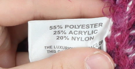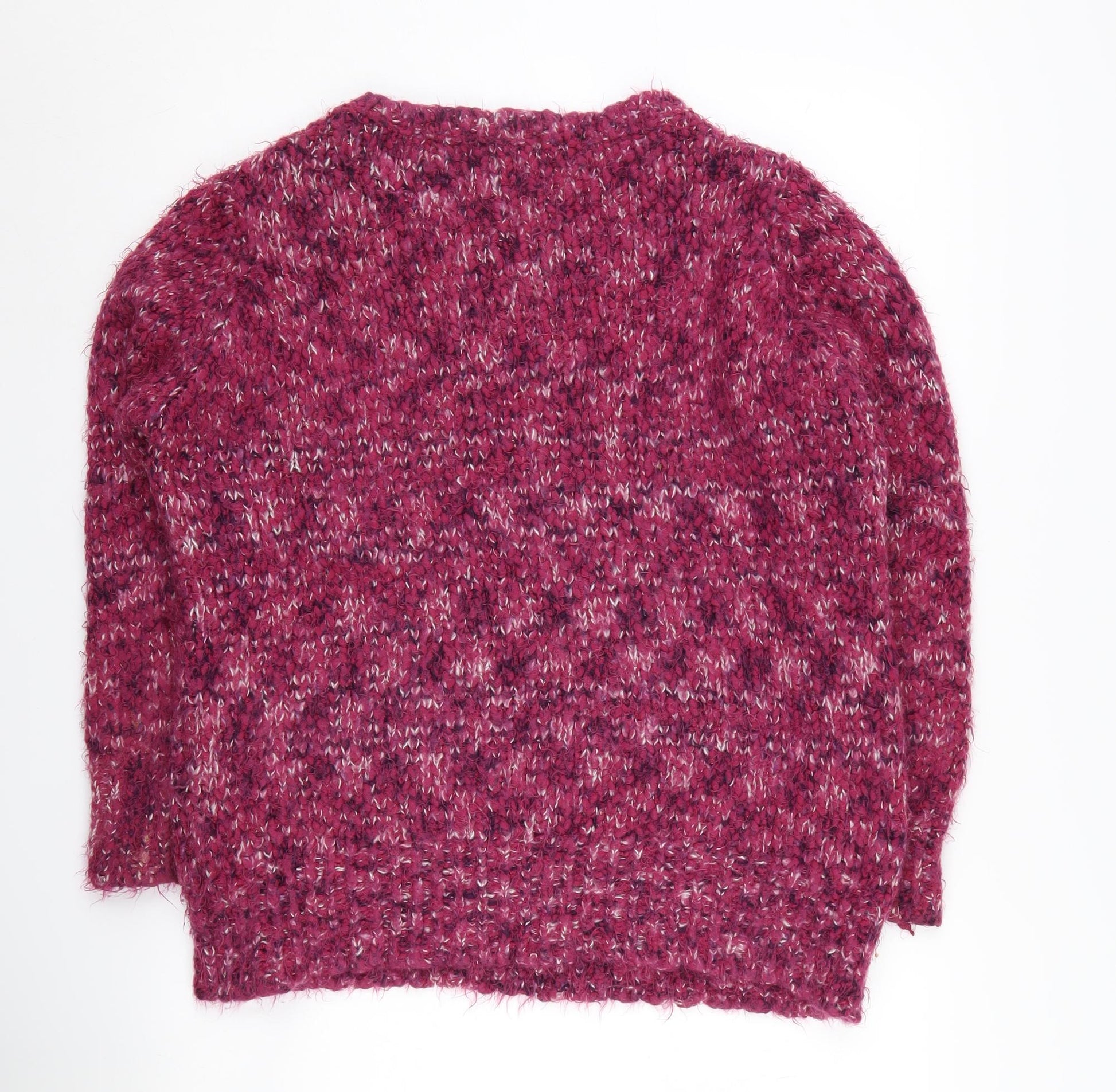 Embrace the colder months in style with this cosy Isle Women's Chunky-Knit Pullover Jumper. The rich pink hue adds a vibrant touch, making it a perfect addition to your winter wardrobe. Crafted for comfort, the jumper features a crew neck and long raglan sleeves, ensuring a relaxed fit suitable for casual occasions. Made from a blend of polyester, acrylic, and nylon, this pullover promises durability with a soft hand feel, keeping you warm through autumn and winter. The chunky-knit design complements its classic look while providing practical warmth. Ideal for layering or wearing on its own, it pairs effortlessly with jeans or leggings. Despite being pre-loved, it remains in excellent condition, showing no visible signs of wear. This stylish jumper is a must-have for anyone looking to stay warm and fashionable, offering both style and comfort in one. Whether you're heading out for a casual day or staying in, this pink pullover is your go-to choice for a chic winter look.