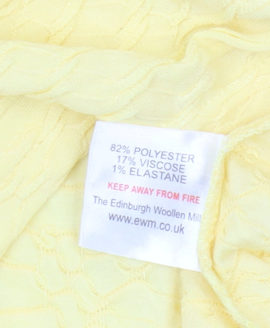 Refresh your wardrobe with this delightful ISLE Women's Yellow Basic Short Sleeve Top, perfect for the warmer months. Crafted with a soft and breathable blend of polyester, viscose, and elastane, this top ensures comfort and ease of movement all day long. The vibrant yellow hue adds a splash of sunshine to any outfit, making it an excellent choice for casual occasions. With a round neckline and straightforward pullover design, this top offers a classic look that pairs beautifully with jeans, skirts, or shorts. The solid pattern and regular fit style are versatile and flattering, suitable for a range of body types. Despite being pre-owned, this top is in excellent condition with no visible flaws, presenting an opportunity to enjoy high-quality fashion at an affordable price. Whether enjoying a casual day out or relaxing at home, this top is an ideal addition to any collection. Don't miss your chance to own this versatile piece that brings both style and comfort.