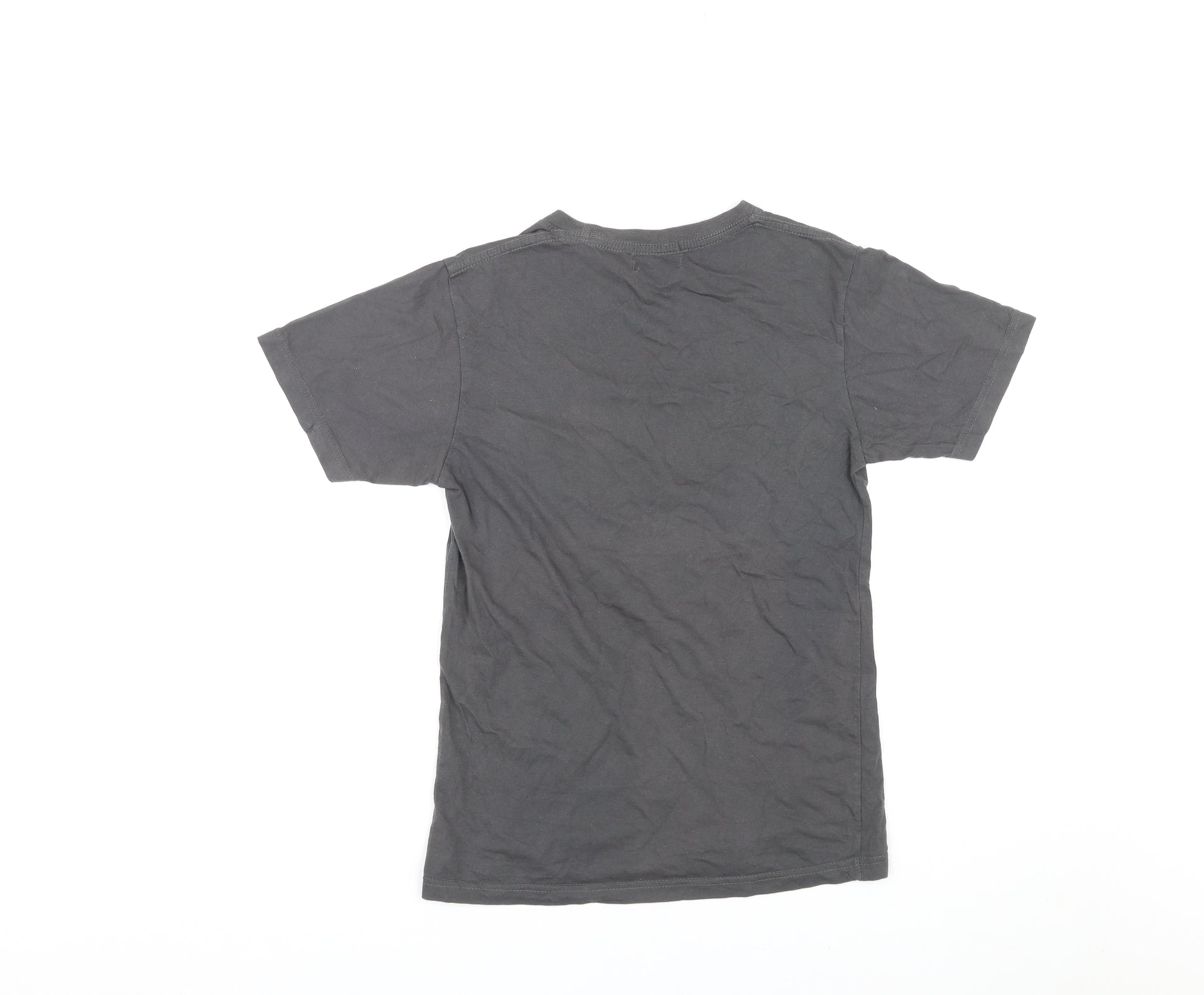 Zara Man Grey Short Sleeve Crew Neck Cotton T-Shirt Men's Size S Zip Detail