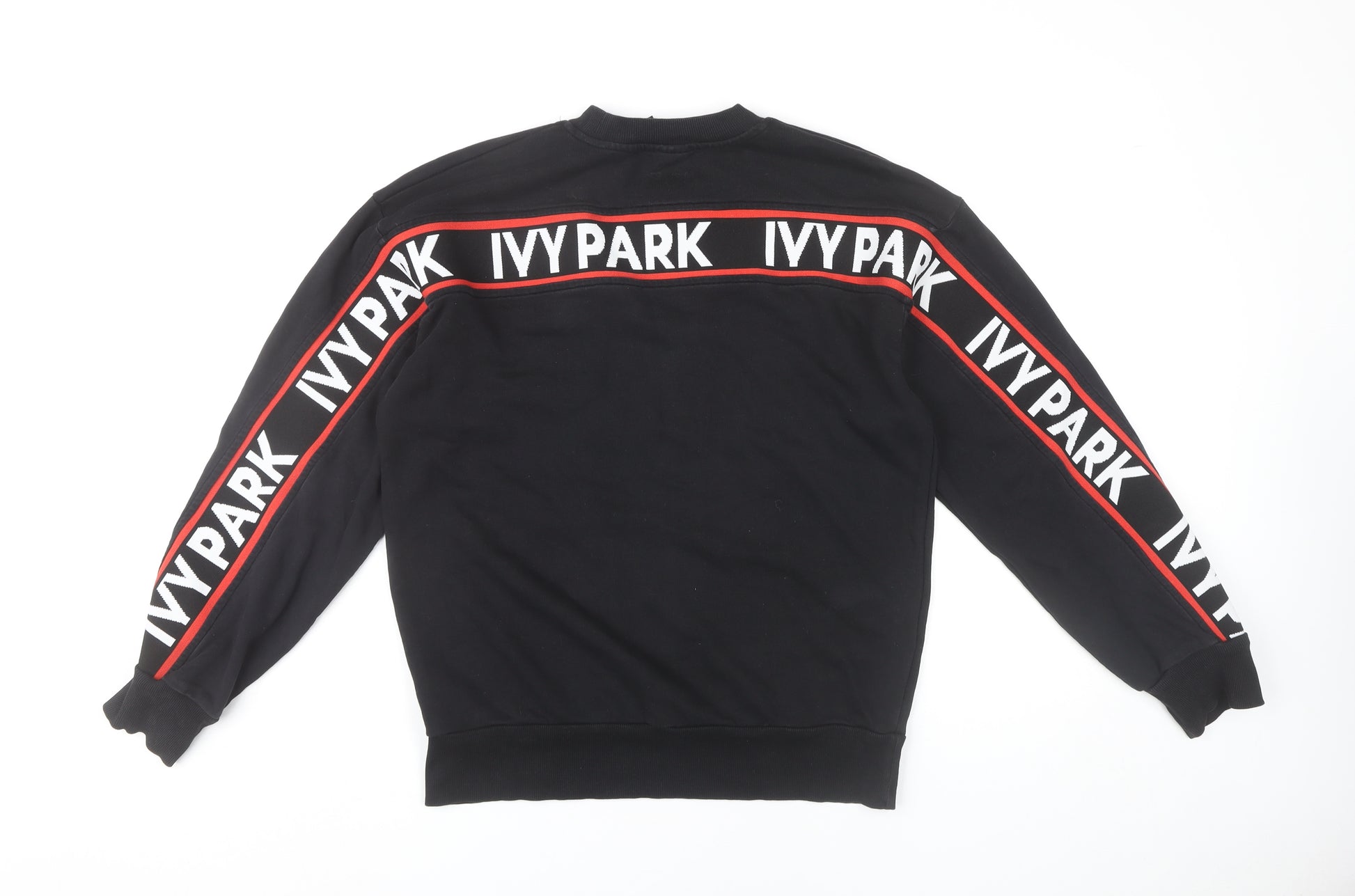 This stylish IVY PARK women’s sweatshirt in black is the perfect blend of casual comfort and contemporary fashion. Crafted from a quality jersey fabric with a mix of cotton, polyester and a touch of elastane, it offers both softness and a flexible fit. The long sleeves and classic crew neck give it a traditional sweatshirt silhouette, while the bold IVY PARK logo detail along the sleeves and across the back introduces a striking sporty edge that is instantly recognisable. Designed for comfort and versatility, this pullover style makes it easy to wear and perfect for layering, whether you are relaxing at home, heading to the gym, or adding a streetwear vibe to your everyday outfits. With its lightweight yet durable build, the sweatshirt works well across multiple seasons, keeping you warm through cooler spring or autumn days and also functioning as a perfect winter layering piece. The fit is regular, offering both comfort and modern styling suitable for women looking to combine practicality with a fashionable look. The ribbed cuffs and hem help retain the shape, while the premium finish ensures lasting wear. Ideal for casual outings, activewear, or off-duty looks, this sweatshirt is both functional and effortlessly stylish. Pair it with joggers or denim for a relaxed outfit, or layer it over sportswear for the perfect athleisure look. In excellent pre-owned condition with only light wear, this sweatshirt has plenty of life left and would be a valued addition to any wardrobe. A standout piece that effortlessly captures contemporary sports-inspired style, this IVY PARK sweatshirt brings high street and athletic fashion together with ease.
