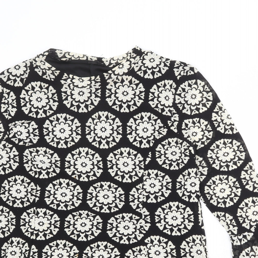 Womens Black Geometric Nylon Basic Blouse Size 14 Round Neck