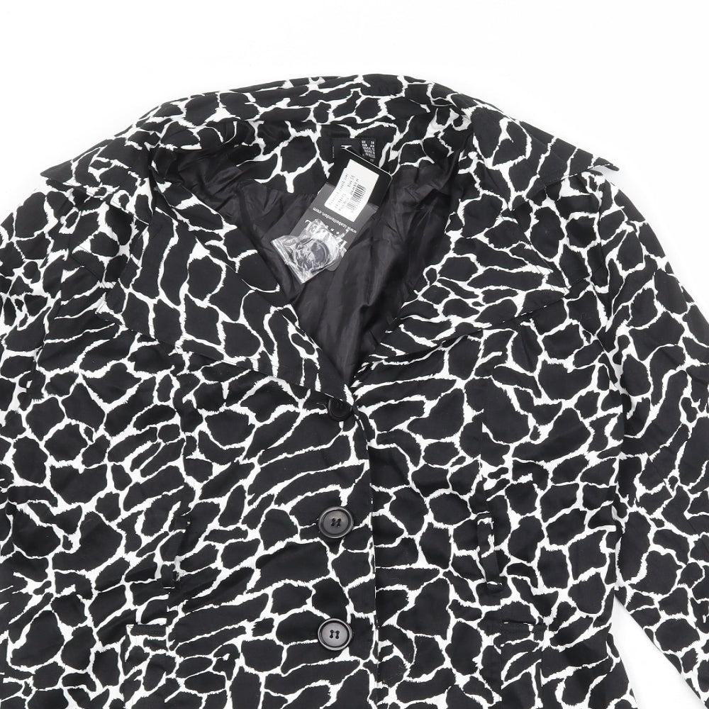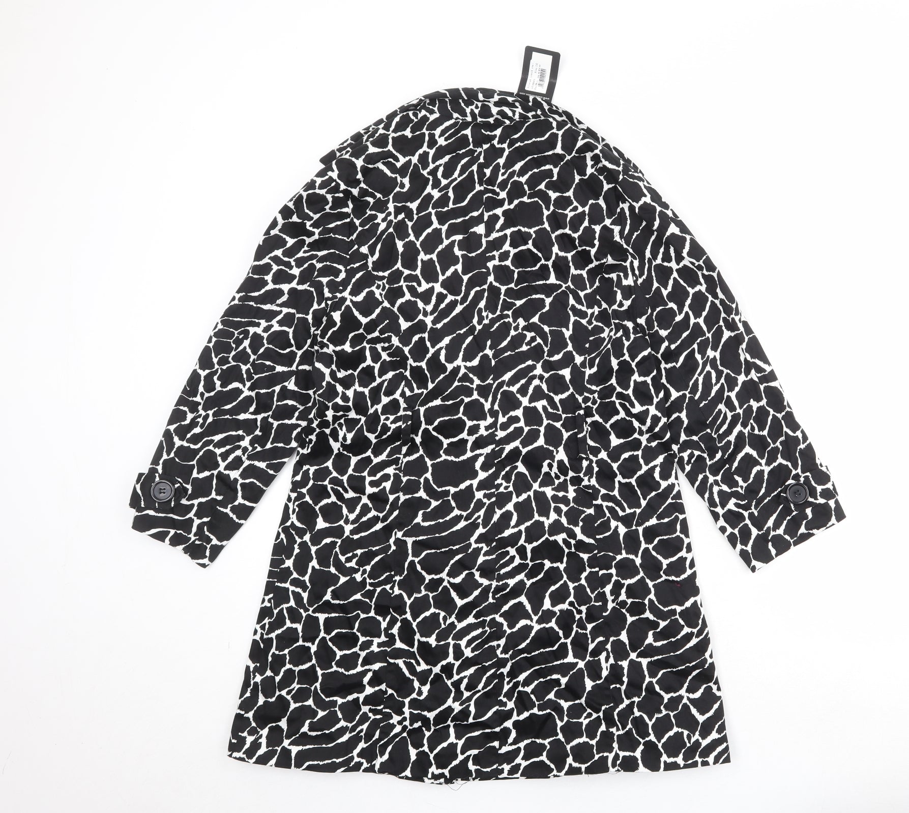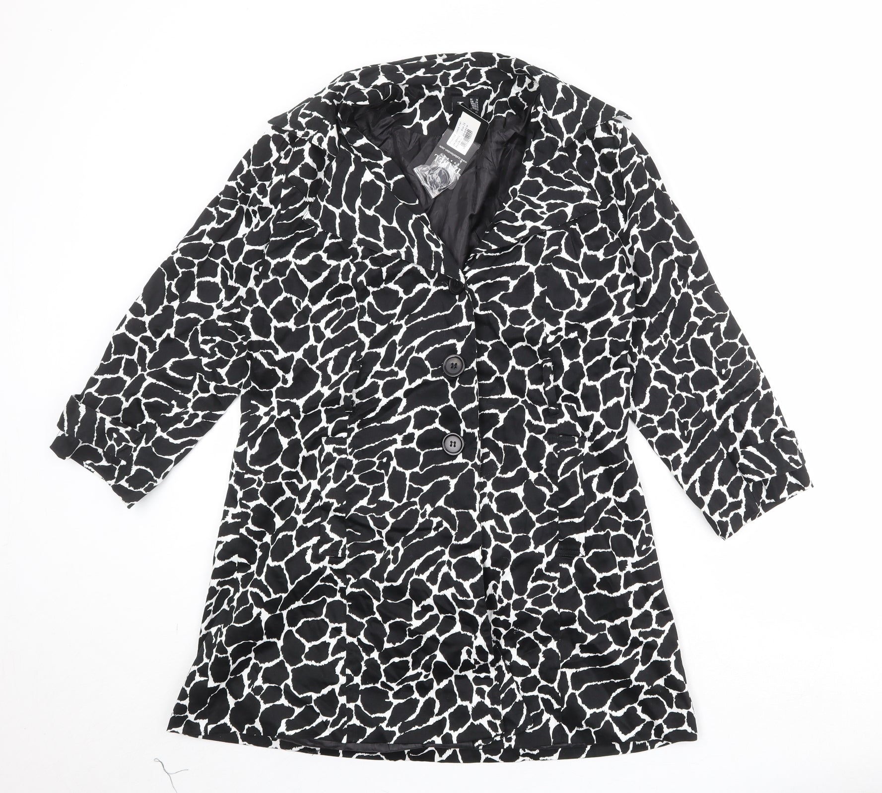Womens Black Geometric Overcoat Coat Size 16 Button