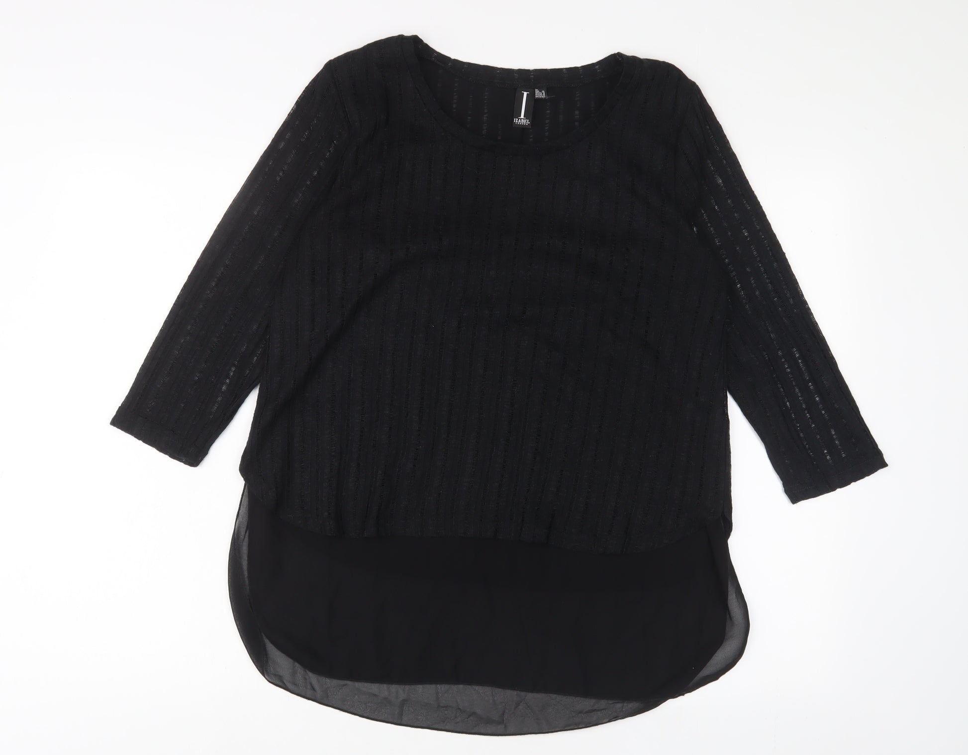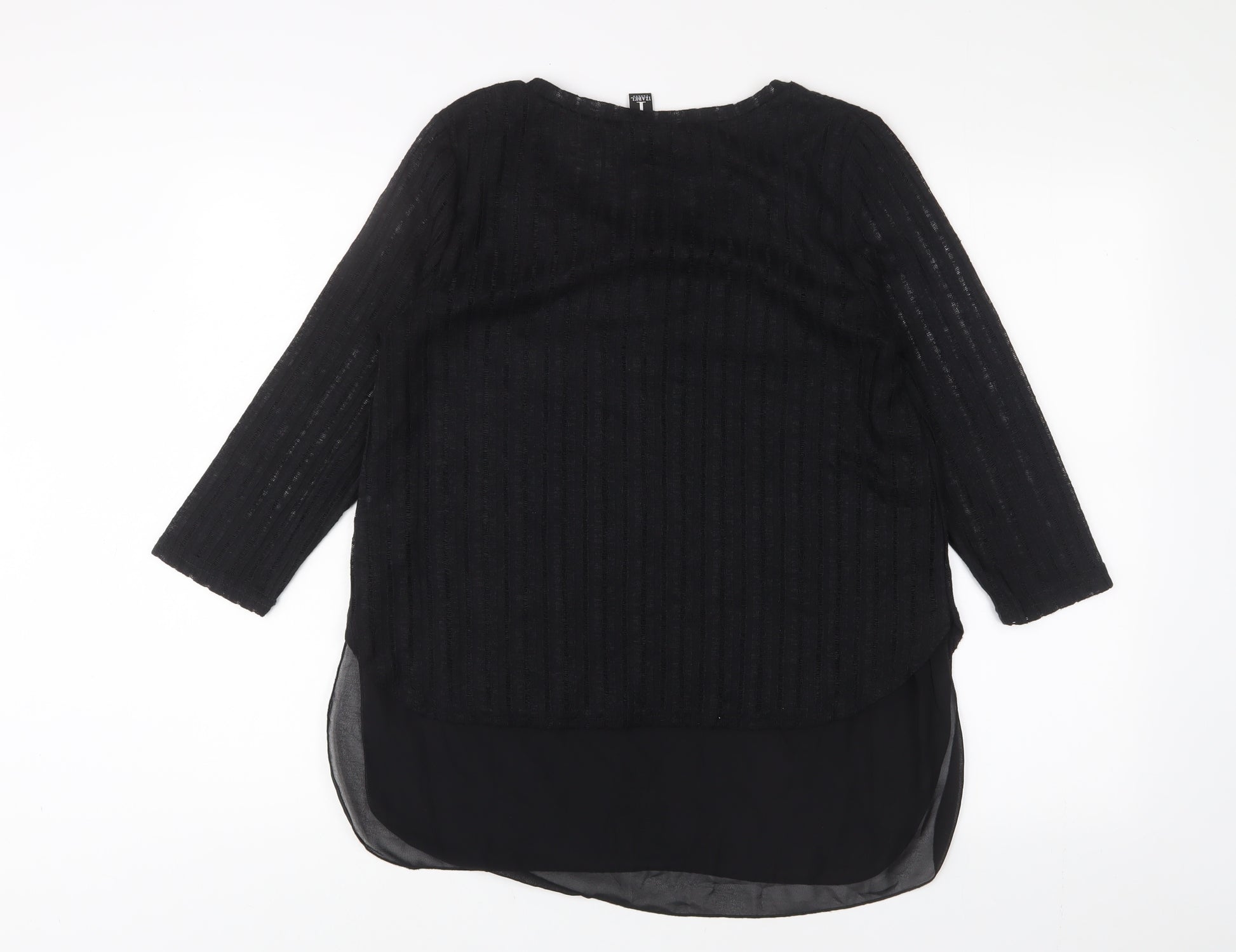 Womens Black Polyester Basic Blouse Size 12 Crew Neck
