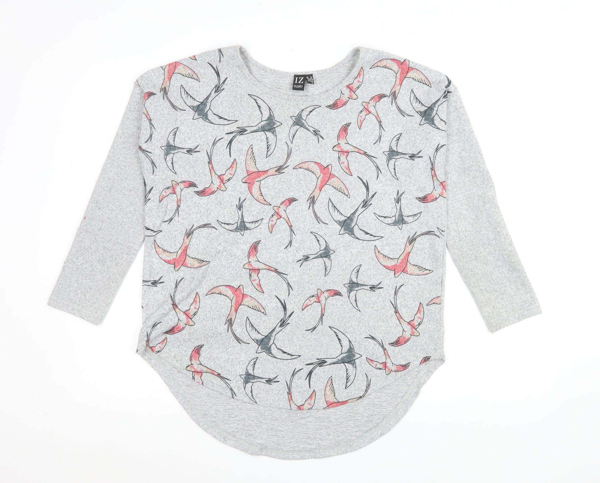 Women's Grey Bird Print Pullover Sweatshirt Size 10