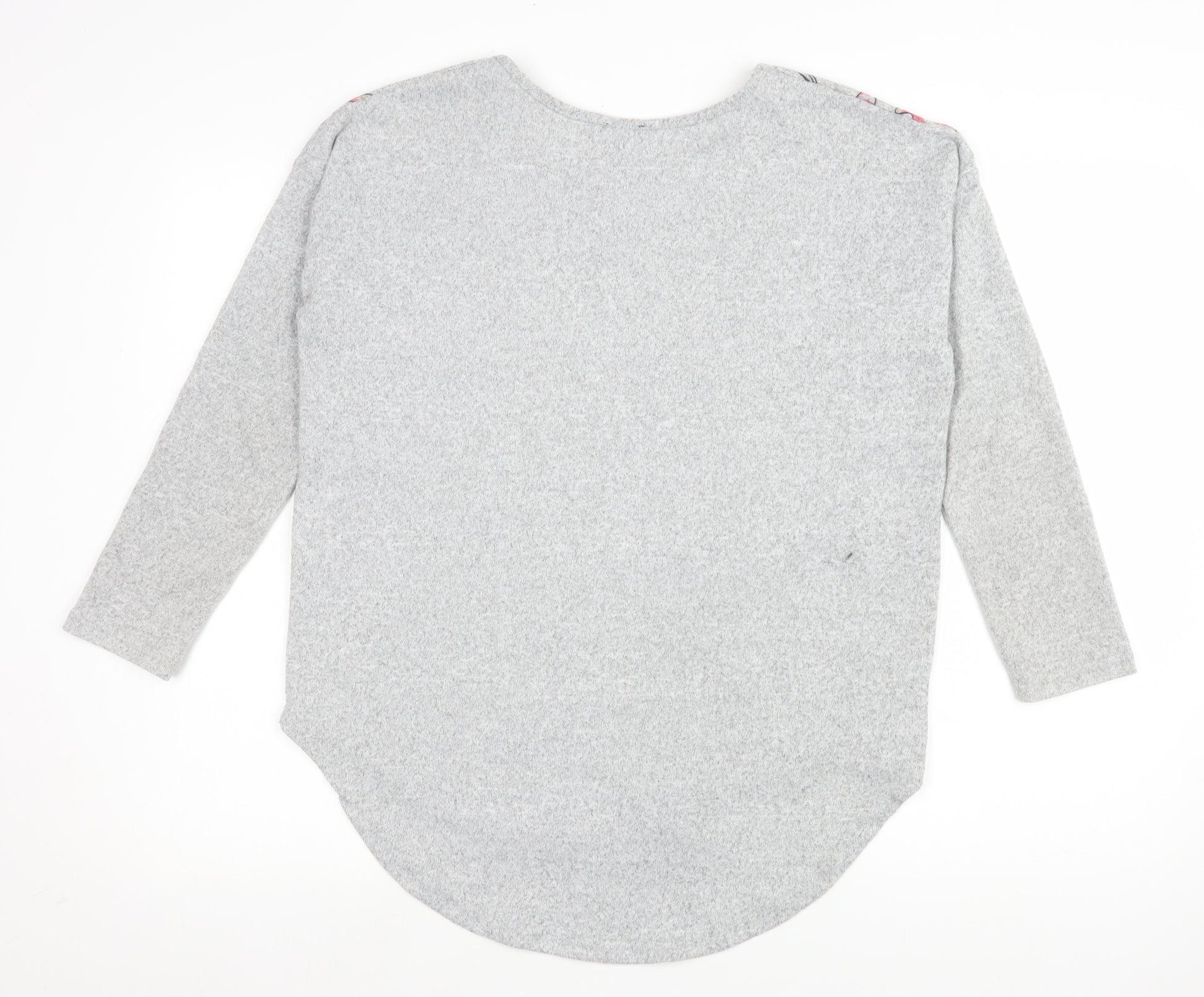Add a touch of charm to your everyday wardrobe with this lovely Izabel London women’s grey pullover sweatshirt featuring a playful bird print design. Crafted from a soft and lightweight knit fabric, this sweatshirt combines both comfort and casual style. The blend of polyester and elastane offers a gentle stretch, allowing for ease of movement and a flattering fit. Designed in a regular UK size 10, the piece has a relaxed shape that’s easy to wear across seasons, making it an ideal choice for cool autumn days, breezy spring outings, or light layering in winter. The simple crew neckline and 3/4 length sleeves provide a laid-back yet chic silhouette suitable for everyday wear. The grey background, detailed with red and grey birds in flight, adds subtle personality without overwhelming the look. This sweatshirt can be paired perfectly with jeans, leggings, or a casual skirt for effortless style. Its animal-themed nature print makes it stand out while keeping things tasteful and versatile. Machine washable for easy care, it’s perfect for the busy modern lifestyle. This Izabel London sweatshirt combines quality material, comfort, and timeless design—an excellent addition to your casual collection whether for home comfort, outdoor meetups, or relaxed weekends. With minimal signs of wear and no visible flaws, it remains in excellent pre-loved condition. Ideal for those who love understated prints and comfortable everyday wear, this stylish pullover is both versatile and eye-catching. A soft, stretchy knit that flatters without restricting, this piece brings lasting comfort and understated charm to any casual look.
