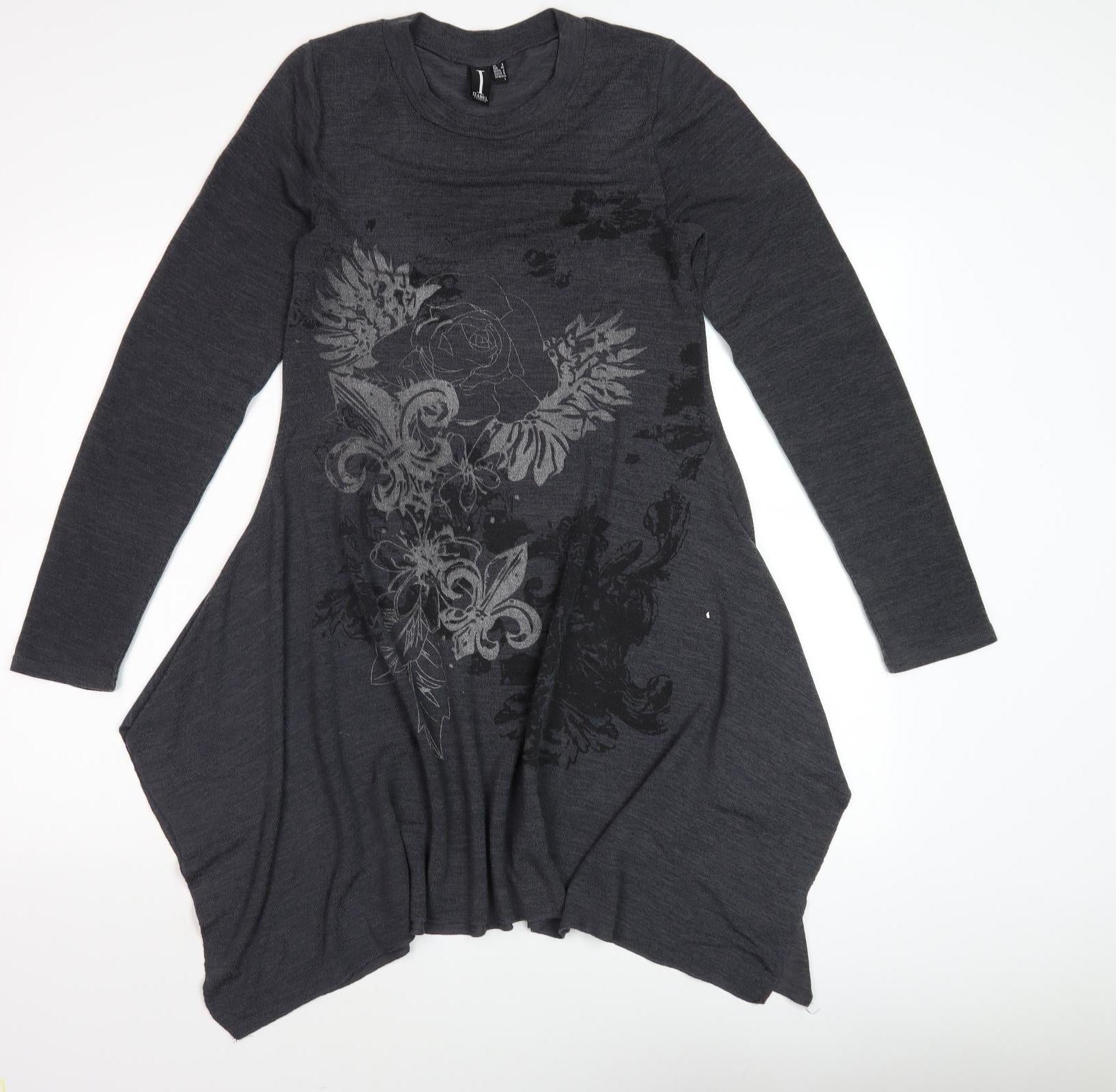 Introducing a versatile piece from Izabel London, this grey trapeze and swing dress is perfect for elevating your wardrobe. Crafted for comfort and style, the dress features a floral pattern that adds a touch of elegance. Its long sleeves provide suitable coverage, making it ideal for layering during cooler months. The crew neckline enhances modesty while maintaining a chic appearance. Made from a soft jersey fabric, this dress ensures you stay comfortable throughout the day. With a relaxed fit, it offers ample room to move, making it an excellent choice for casual outings or laid-back events. The asymmetric cut adds a modern flair, distinguishing it from conventional designs. This dress is suitable for women who appreciate a blend of simplicity and elegance in their outfits. Whether paired with boots for an autumn walk or sandals on a spring day, its adaptability makes it a staple item. Although in excellent condition with no visible flaws, this pre-loved dress remains stylish and is ready to be embraced by its next owner. A worthwhile addition to any fashion-forward collection, this piece promises to complement various styles while ensuring maximum wearability.