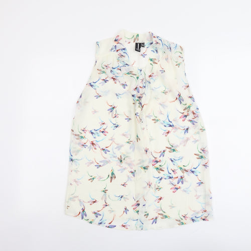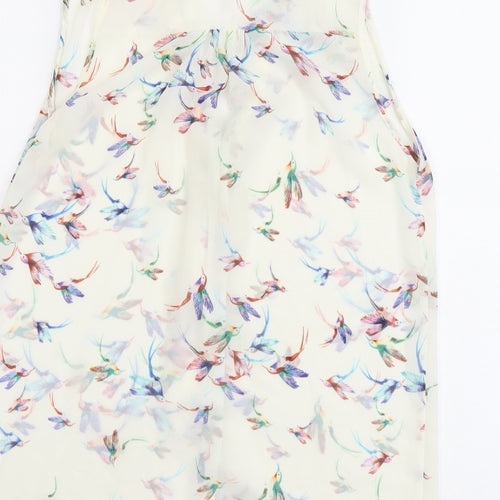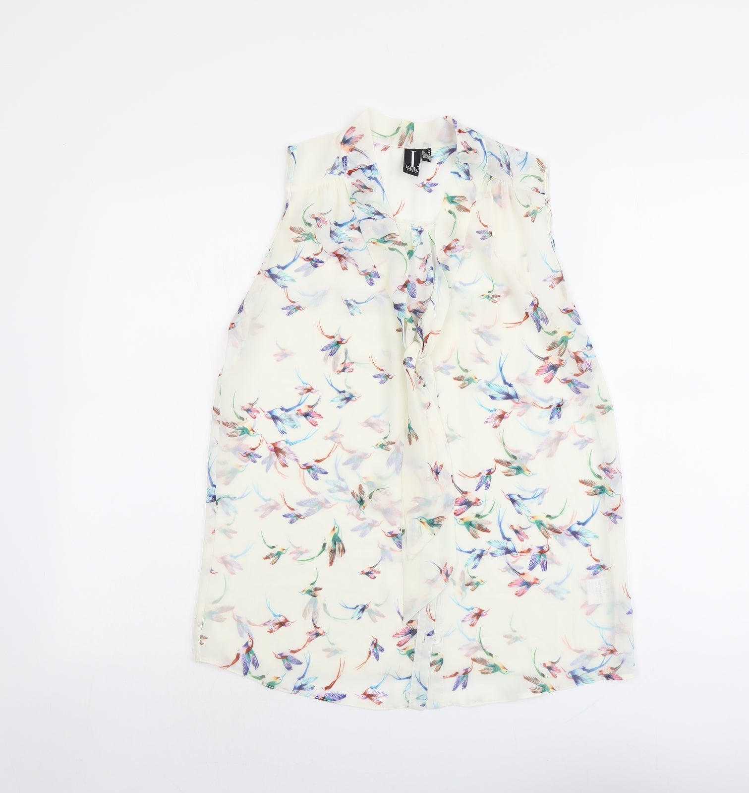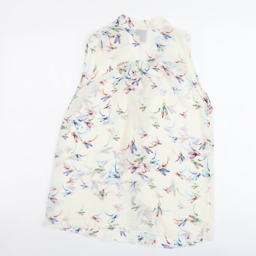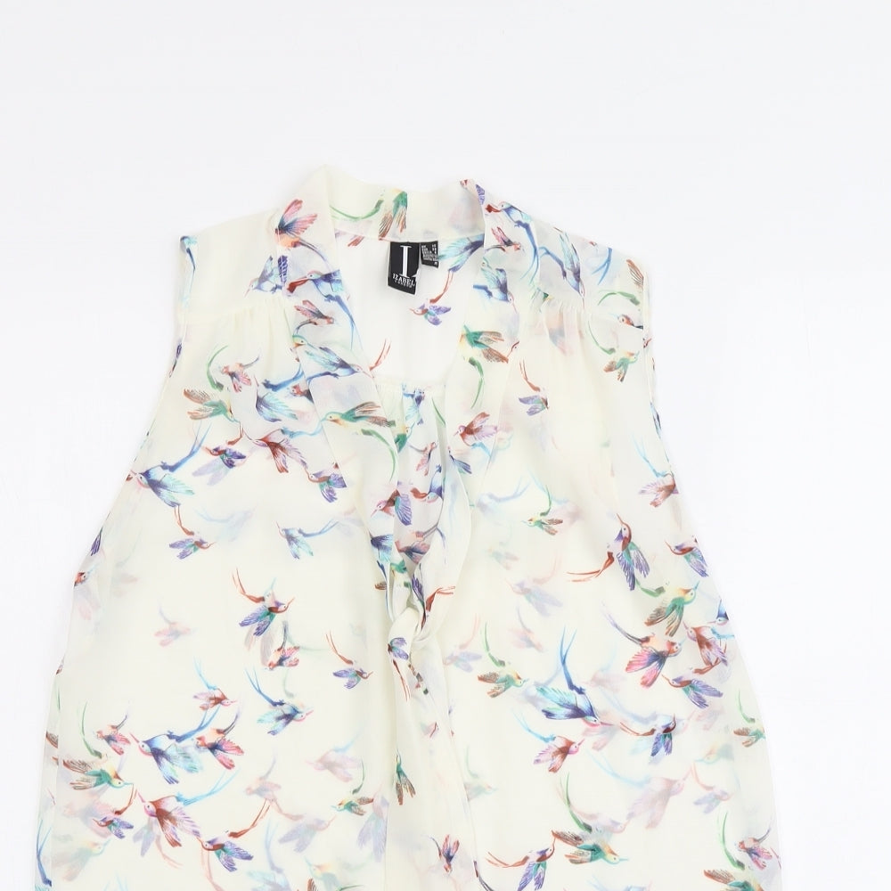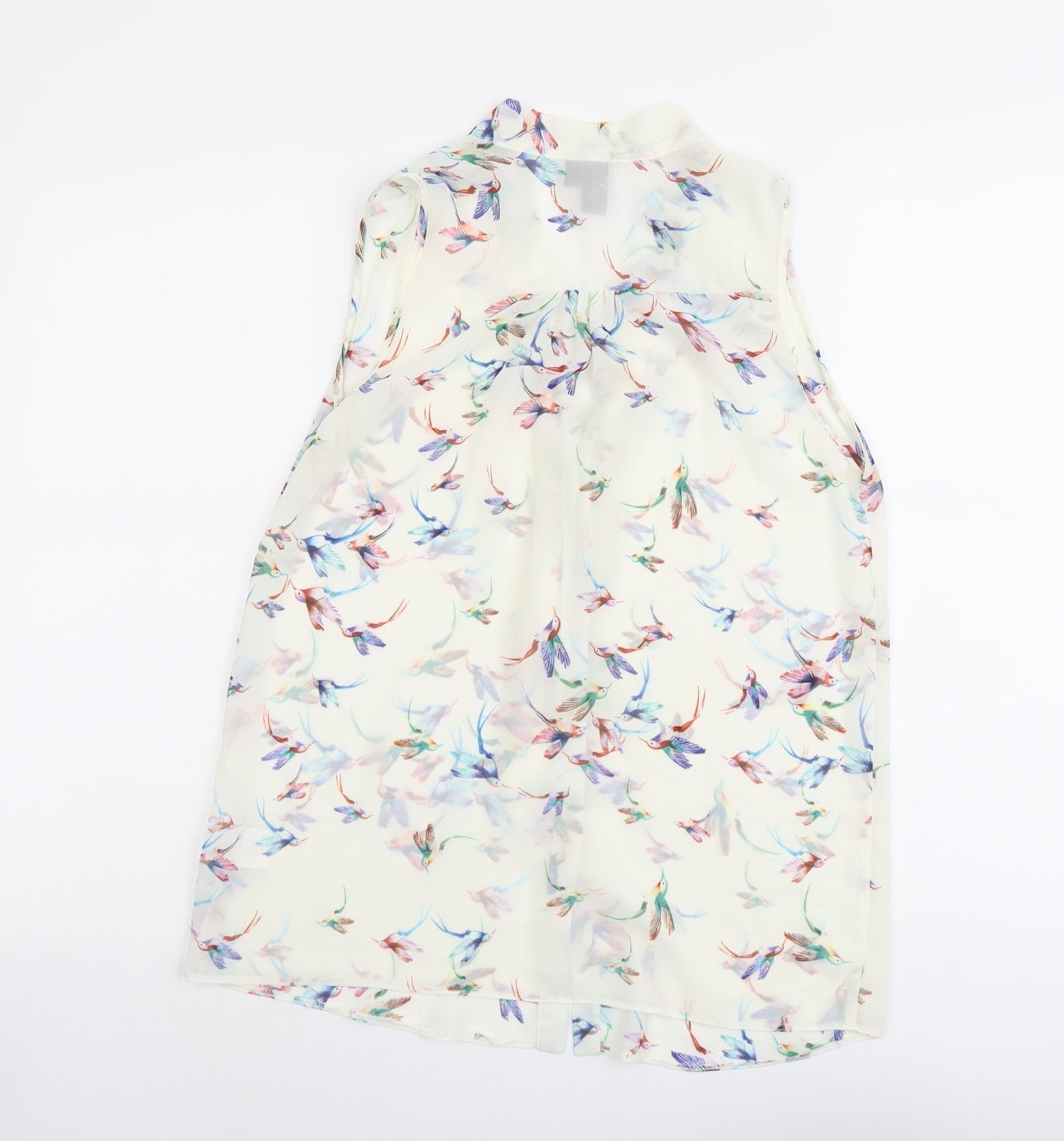 Womens Ivory Geometric Polyester Basic Blouse Size 10 V-Neck - Bird Pattern