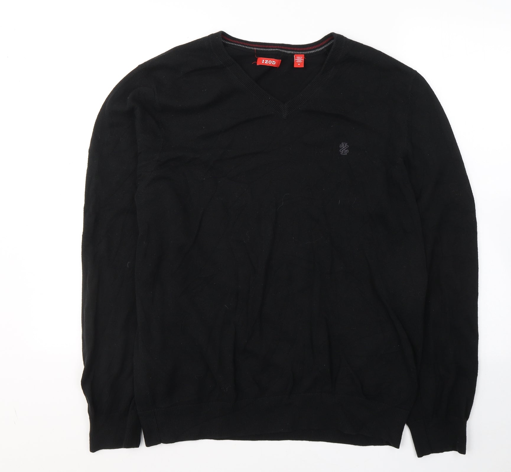 Mens Black V-Neck Cotton Pullover Jumper Size M