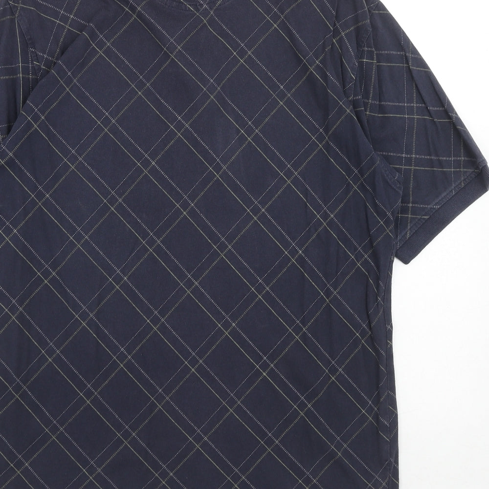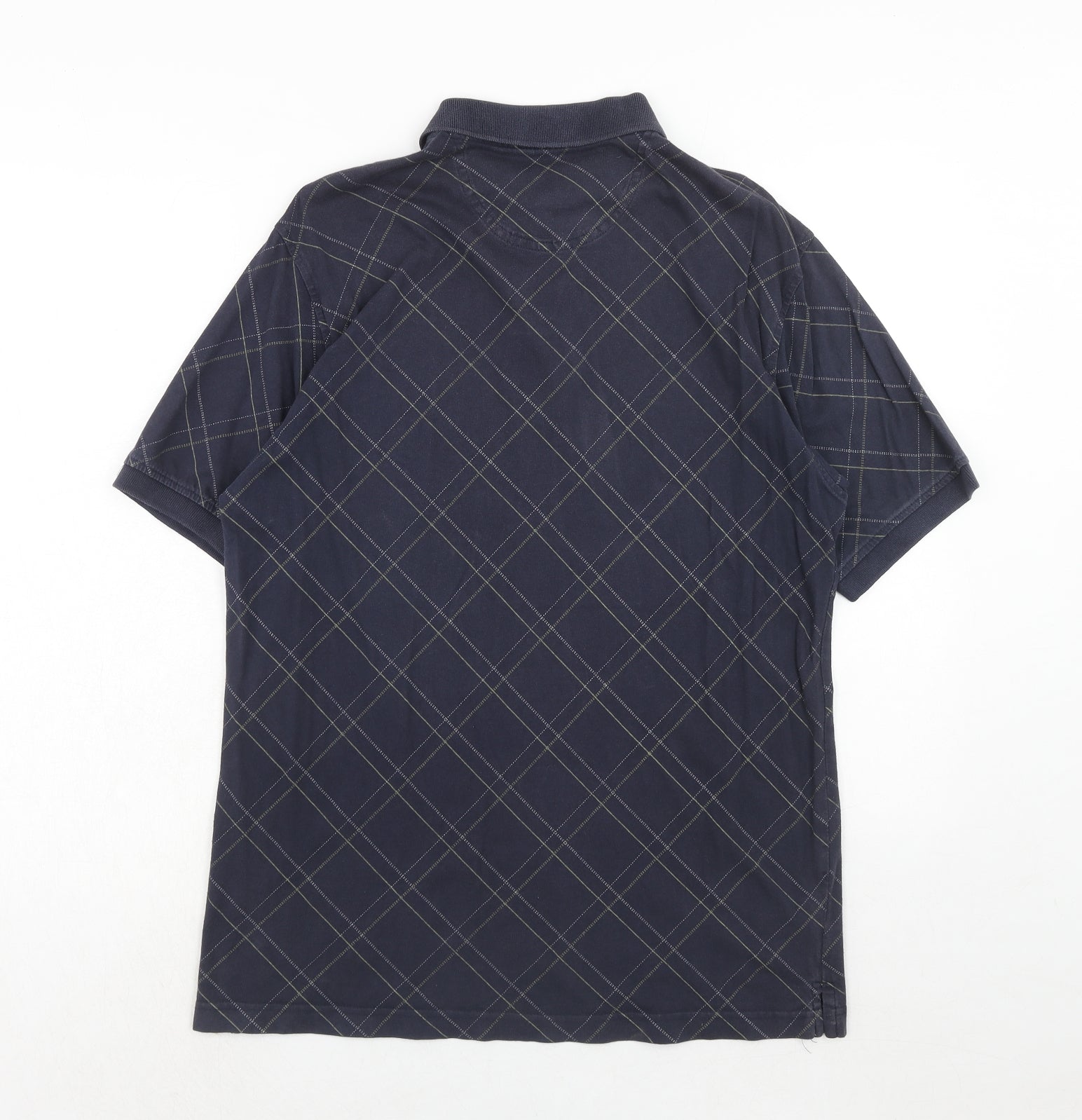 Mens Blue Geometric Cotton Polo Size M Collared Button