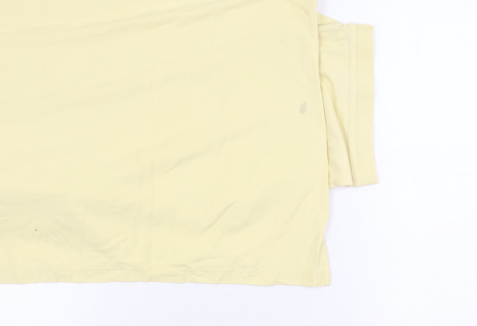 Step out in style with this IZOD men's polo shirt, a perfect addition to any casual wardrobe. Made from 100% high-quality cotton, this polo shirt offers excellent comfort and breathability, making it ideal for warmer seasons. Its classic yellow hue adds a refreshing touch to your outfit, making it a versatile piece for casual outings or relaxed office Fridays. The shirt features short sleeves and a classic collared neckline, ensuring a timeless and sophisticated look that never goes out of style. With a solid pattern and a comfortable regular fit, this polo shirt provides just the right balance between laid-back and smart, allowing you to pair it seamlessly with jeans or chinos. Despite a slight stain on the front, the overall condition is very good, making it a great value addition to your closet. Enhance your everyday wardrobe with this IZOD polo shirt, where style meets comfort for an effortless look.